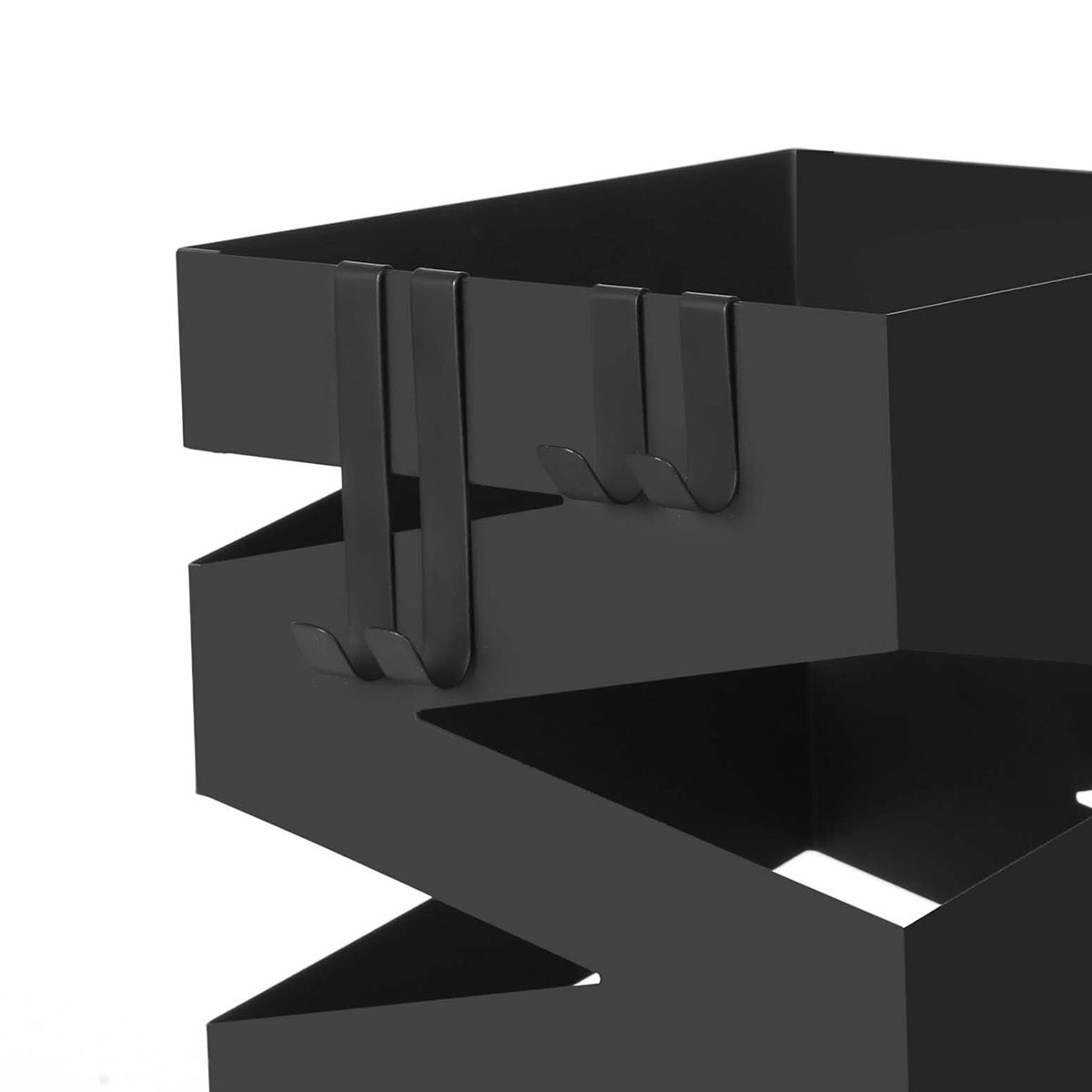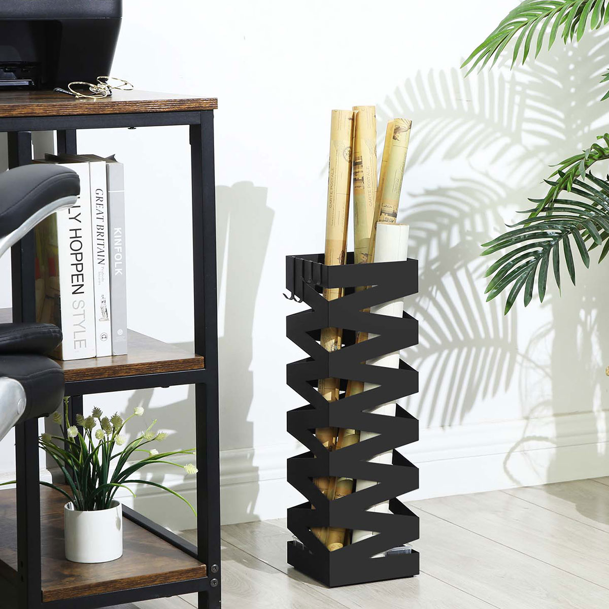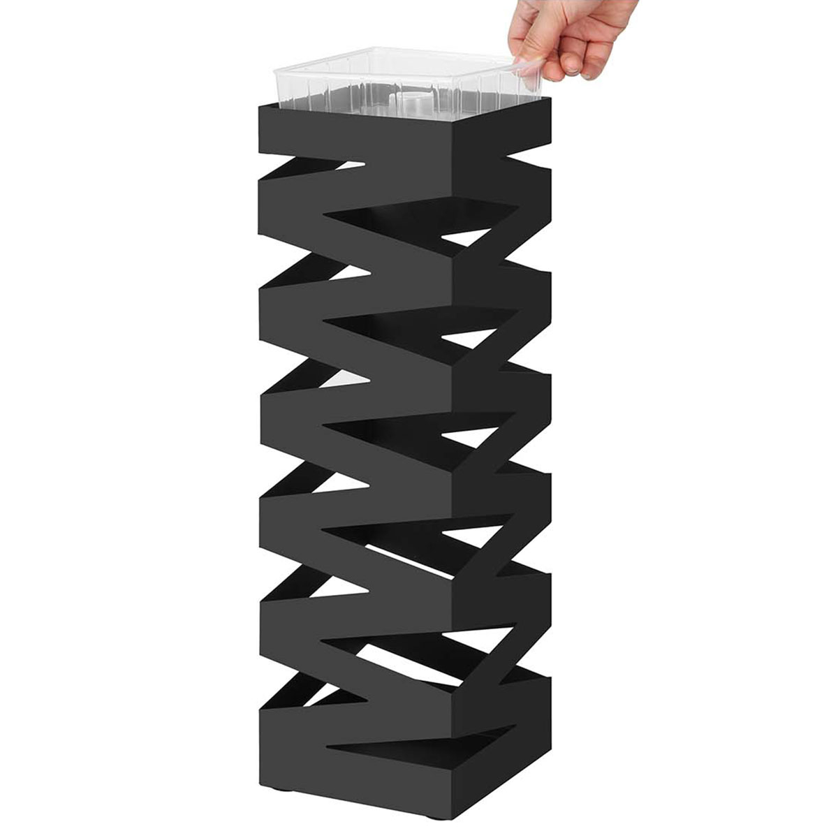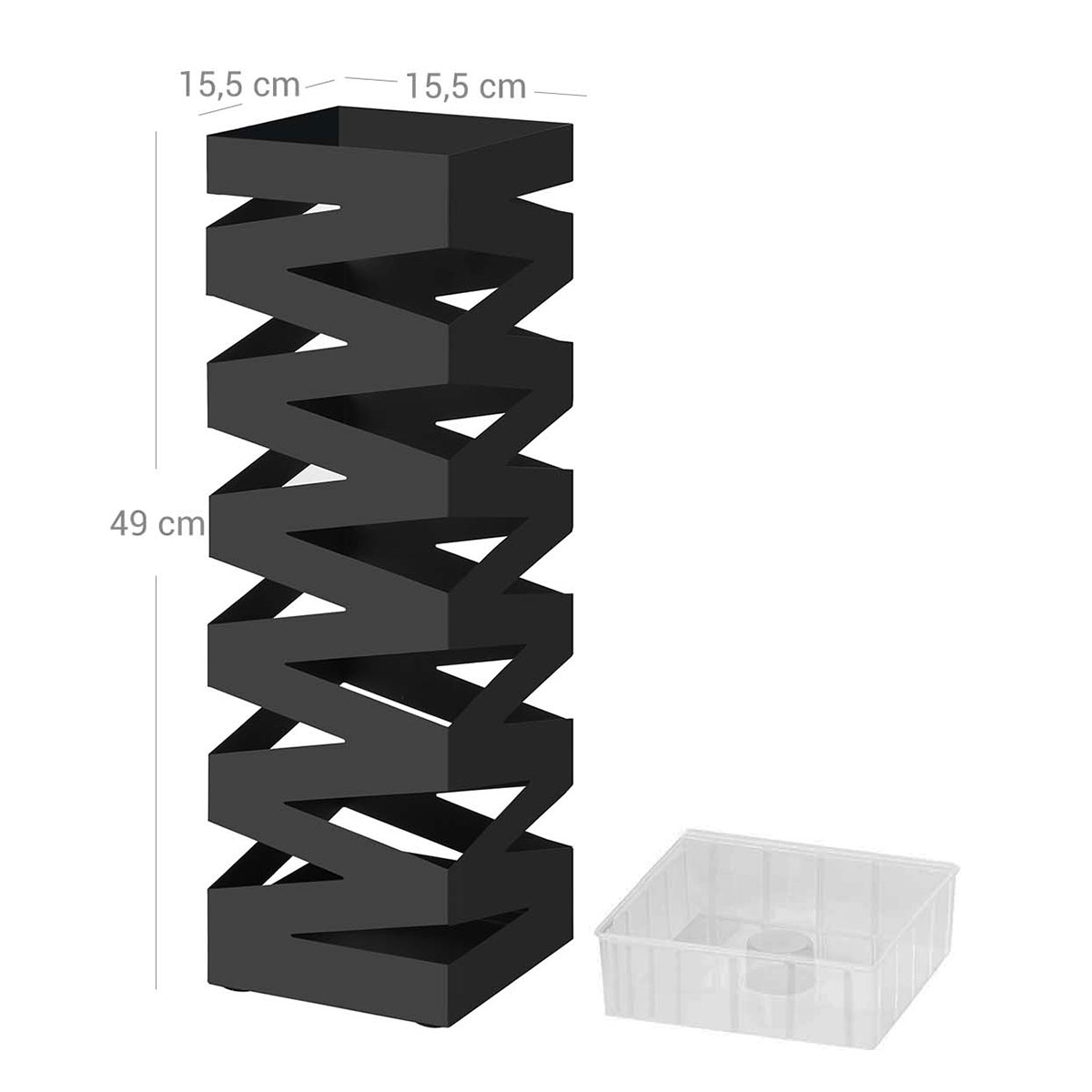 Ομπρελοθήκη με μοντέρνο σχεδιασμό από την εταιρεία Songmics. Είναι κατασκευασμένη από μεταλλικό υλικό σε μαύρο χρώμα και έχει αφαιρούμενο πλαστικό δοχείο για να μην καταστρέφεται το δάπεδο. Διαθέτει 2 μικρά και 2 μεγαλύτερα γαντζάκια για να κρεμάτε τις ομπρέλες. Ιδανική ομπρελοθήκη που θα ταιριάξει σε κάθε σύγχρονο σπίτι.