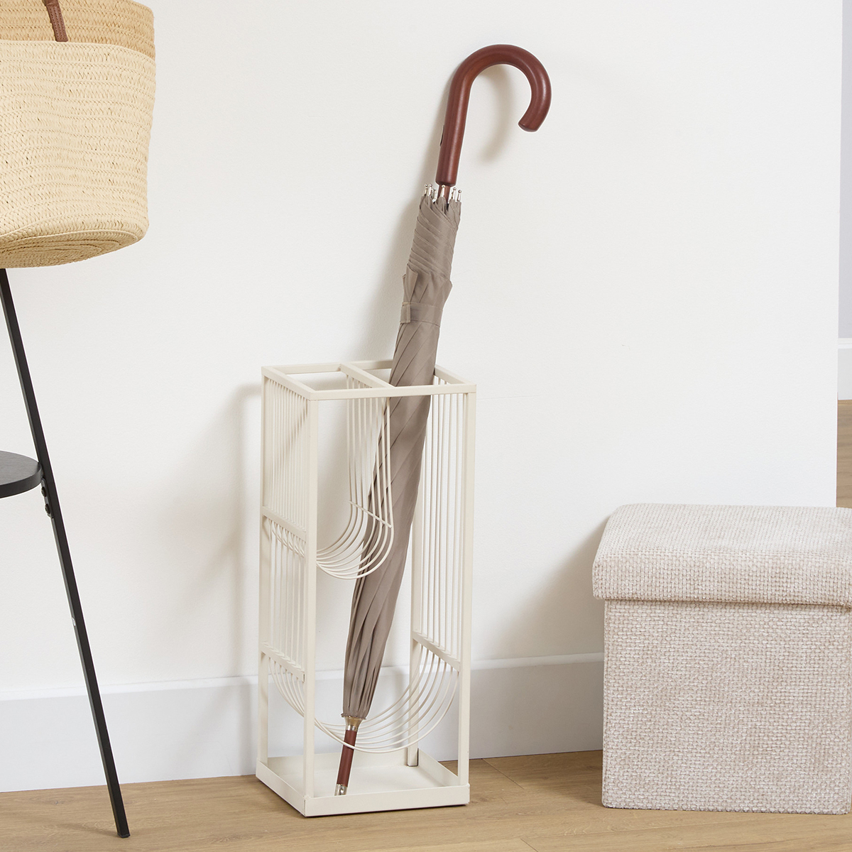 Μεταλλική ομπρελοθήκη με μοντέρνο σχεδιασμό σε μπεζ χρώμα. Διαθέτει 2 θέσεις, για μεγάλες ομπρέλες - μπαστούνια, αλλά και για μικρές σπαστές. Ιδανικό αξεσουάρ για την είσοδο του σπιτιού ή του γραφείου.