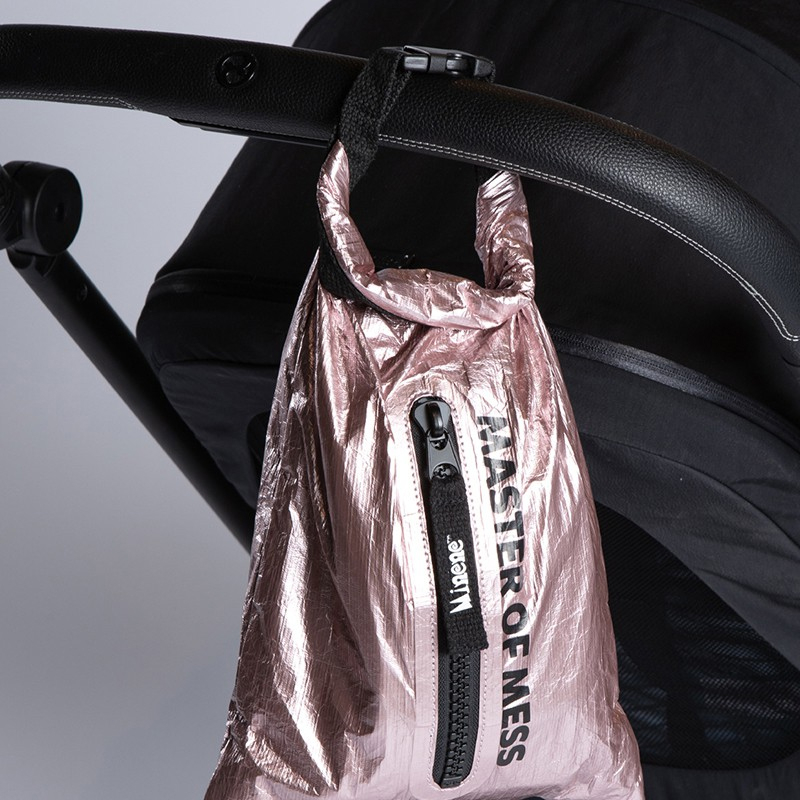 Organizer καροτσιού σε ροζ χρώμα από την εταιρία Minene. Είναι υφασμάτινο, κατασκευασμένο εσωτερικά από 100% νάιλον και εξωτερικά από 100% DuPont ™ Tyvek® με αδιαβροχοποίηση. Κουμπώνει στο καρότσι και κλιπ και χωράει όλα τα βασικά πράγματα που χρειάζεστε για μια βόλτα με το μωρό ενώ είναι κατάλληλο για όλα τα καρότσια. Διαθέτει κεντρική τσέπη με φερμουάρ για εύκολη πρόσβαση σε πάνες και προσωπικά αντικείμενα, πλάγια τσέπη για να μωρομάντηλα για εύκολο άνοιγμα.