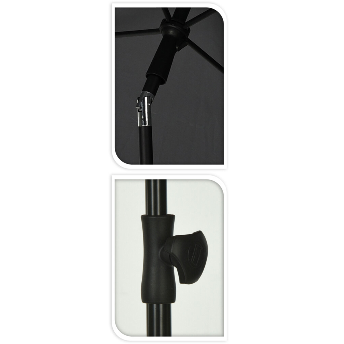 Ορθογώνια ομπρέλα κήπου με διαστάσεις 125x200 σε ανθρακί χρώμα. Είναι κατασκευασμένη από αδιαβροχοποιημένο ύφασμα από 100% polyester. Διαθέτει σκελετό αλουμινίου και 4 ακτίνες που διασφαλίζει σταθερή κατασκευή. Το ύψος της μπορεί να προσαρμοστεί ενώ έχει ανάκληση για να προσφέρει σκιά από διαφορετικές γωνίες. Μπορεί να χρησιμοποιηθεί στον κήπο, στο μπαλκόνι ή στην παραλία. Επίσης μπορείτε να την πάρετε μαζί σας στο κάμπινγκ ή στο ψάρεμα. Δεν περιλαμβάνεται βάση.