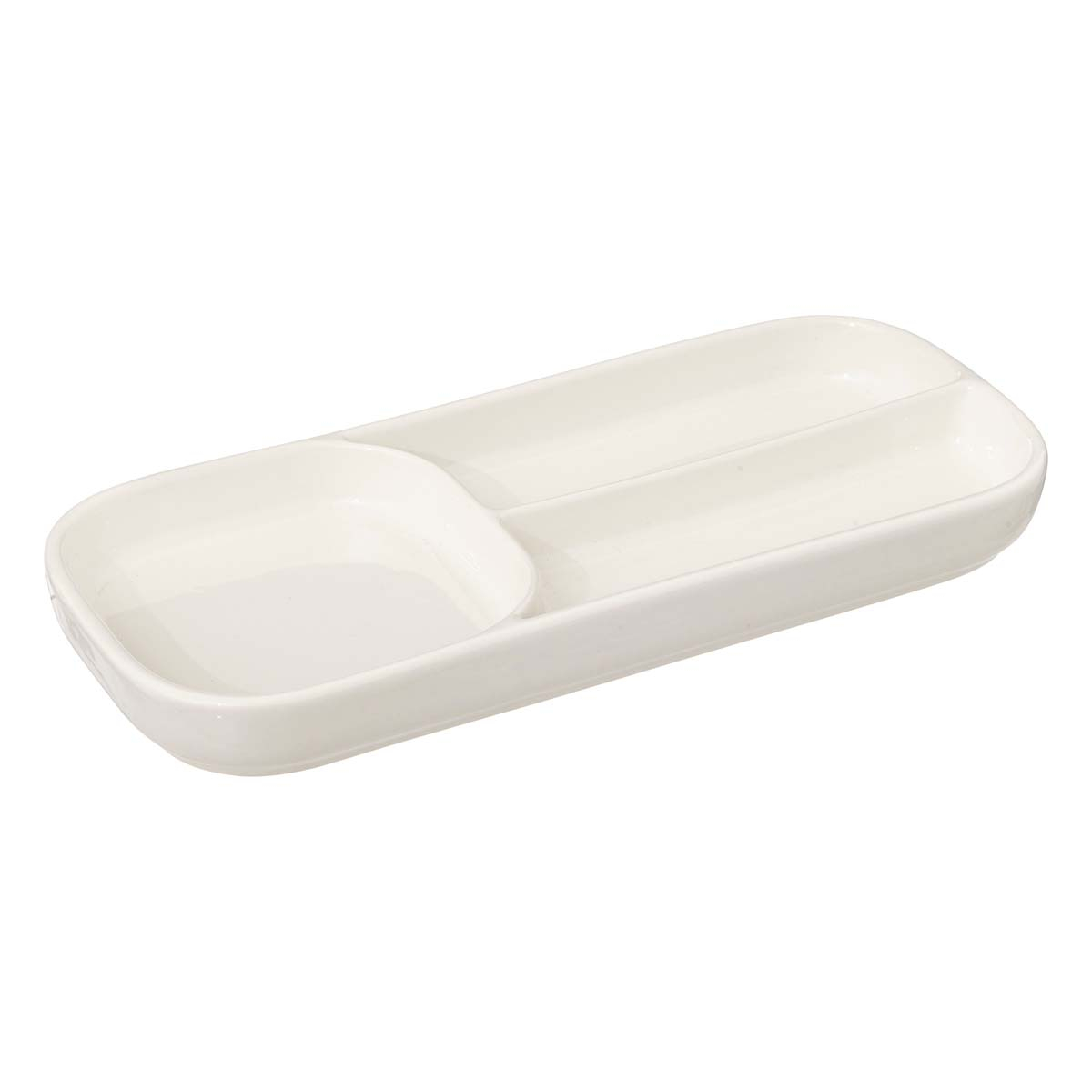 Ορντεβιέρα σερβιρίσματος κατασκευασμένη από κεραμικό υλικό σε λευκό χρώμα. Διαθέτει 3 χωρίσματα για να σερβίρετε τους ξηρούς καρπούς ή ότι άλλο θέλετε.
