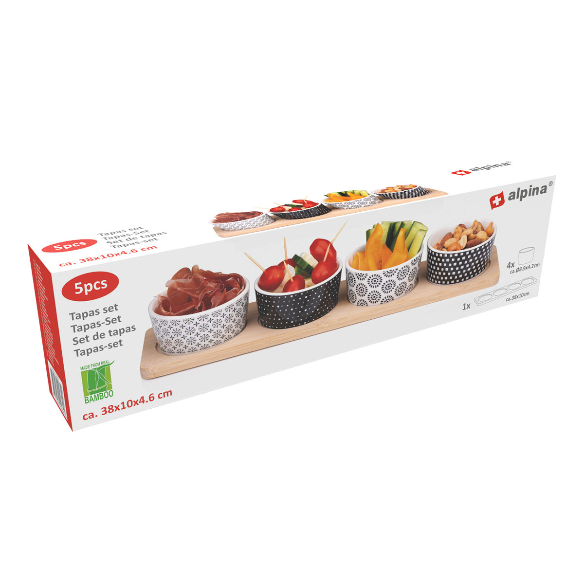 • Τεμάχια: 1 Ορντεβιέρα Σερβιρίσματος 38εκ.Mx10εκ.Πx1εκ.Υ, 4 Μπωλάκια Φ8.9εκ.x4.2εκ.Υ