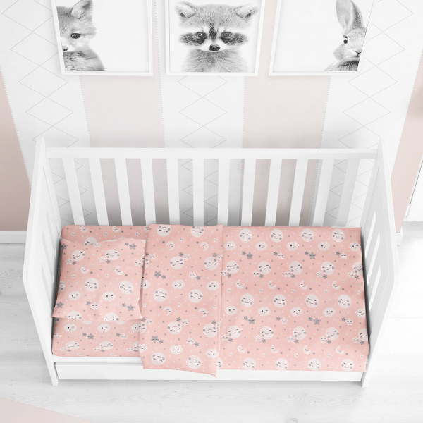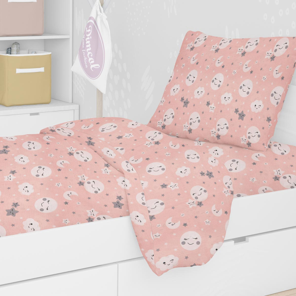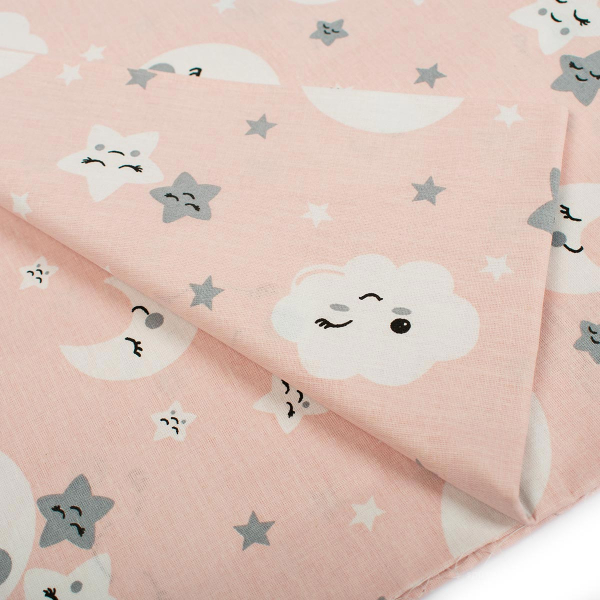 Πάνα χασέ σε σομόν χρώμα και σχέδιο αστέρια και σύννεφα. Σύνθεση από 100% βαμβάκι 144 κλωστών που προσφέρει απαλότητα για να τυλίξει το μωρό σας με ασφάλεια. Συσκευασία Polybag.
