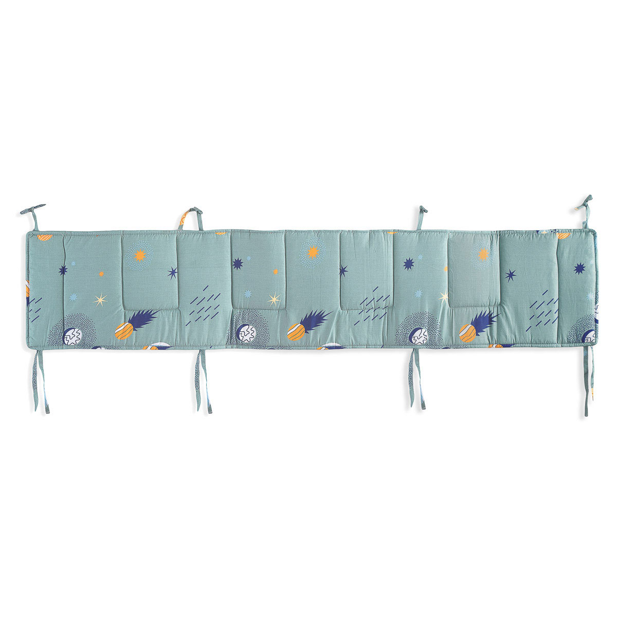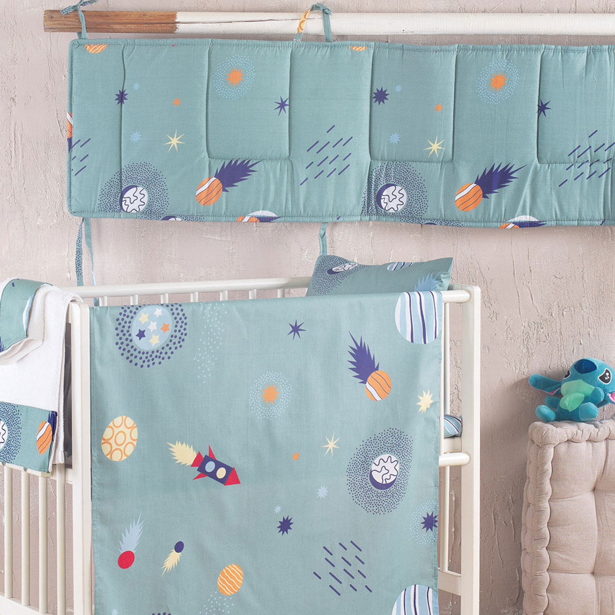 Πάντα για την κούνια του μωρού σε τυρκουάζ χρώμα, με μπλε-πορτοκαλί λεπτομέρειες και μοντέρνο σχέδιο από την εταιρεία Rythmos. Το εξωτερικό της ύφασμα είναι από 100% βαμβάκι 144 κλωστών ενώ η γέμιση από πολυεστερική βάτα. Προστατεύει το μωρό σας από τυχόν χτυπήματα στο κάγκελο της κούνιας. Συνδυάστε την με τα υπόλοιπα είδη της σειράς για ένα ολοκληρωμένο αποτέλεσμα στο βρεφικό δωμάτιο.