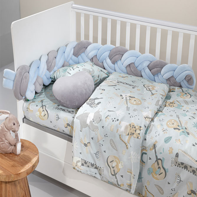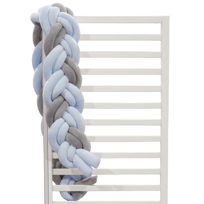 Πάντα κούνιας σε σχήμα πλεξούδας από την εταιρεία Saint Clair, έχει σχήμα πλεξούδας σε γαλάζιο και γκρι χρώμα. Είναι κατασκευασμένη από βαμβάκι. Είναι κατάλληλη για λίκνο, κούνια και παιδικό-προεφηβικό κρεβάτι, ενώ μπορεί να χρησιμοποιηθεί και ως φωλιά ύπνου για βρέφη. Προστατέψτε το μωρό σας από χτυπήματα στην κούνια με αυτή την βρεφική πάντα.