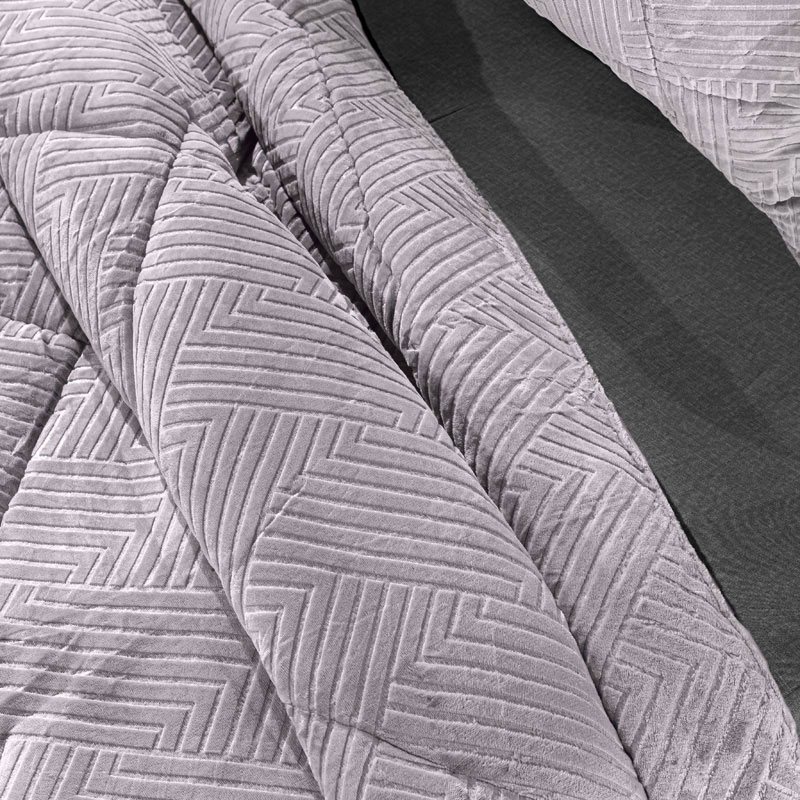 Πάπλωμα ημίδιπλο σε λιλά χρώμα και ανάγλυφη επιφάνεια της εταιρείας Guy Laroche. Το ύφασμά του είναι βελουτέ από 100% polyester ενώ η γέμιση είναι από πολυεστερική βάτα. Ιδανικό σκέπασμα για τους φθινοπωρινούς και χειμερινούς μήνες του χρόνου.
