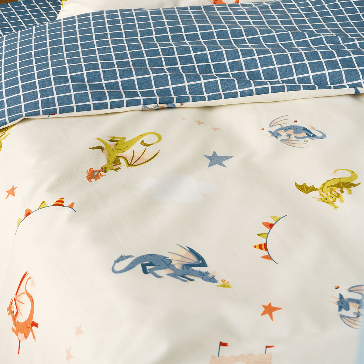 Βρεφικό πάπλωμα από την εταιρεία Kentia για την κούνια του μωρού. Έχει εκρού φόντο και σχέδιο δράκο σε πολύχρωμες αποχρώσεις. Το εξωτερικό του ύφασμα είναι 100% βαμβάκι 150 κλωστών, απαλό και ανθεκτικό. Εσωτερικά έχει πολυεστερική βάτα 200gsm, που προσφέρει ζεστασιά και το καθιστά ιδανικό σκέπασμα για τους χειμερινούς μήνες. Είναι διπλής όψης καθώς η μία μεριά έχει το σχέδιο του πανωσέντονου και η άλλη το σχέδιο του κατωσέντονου. Συνδυάστε το με τα υπόλοιπα προϊόντα του ίδιου σχεδίου για ένα ολοκληρωμένο αποτέλεσμα.