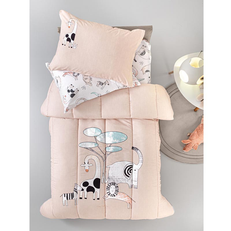 Πάπλωμα μονό με σχέδιο ζωάκια σε σομόν χρώμα και φούξια-γκρι λεπτομέρειες από την εταιρεία Guy Laroche. Το εξωτερικό ύφασμα είναι από 100% microsuede και εσωτερικά έχει πολυεστερική βάτα. Είναι ζεστό, ιδανικό για το χειμώνα. Συνδυάστε το με τα υπόλοιπα είδη της ίδιας σειράς για ένα ολοκληρωμένο αποτέλεσμα.