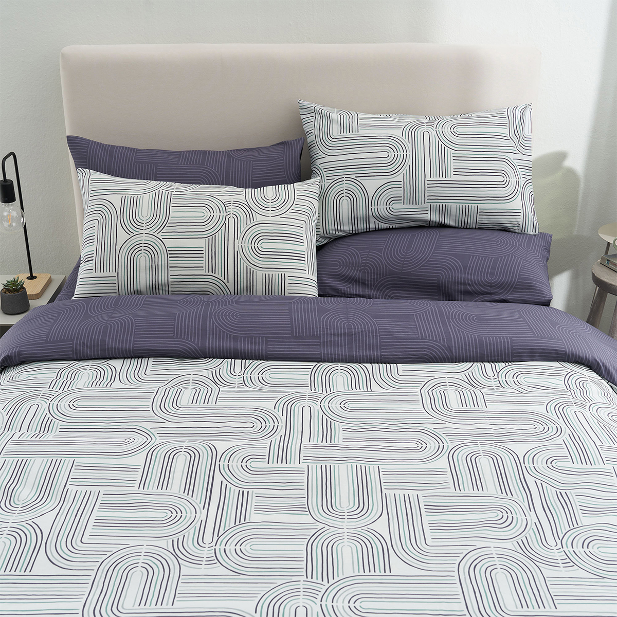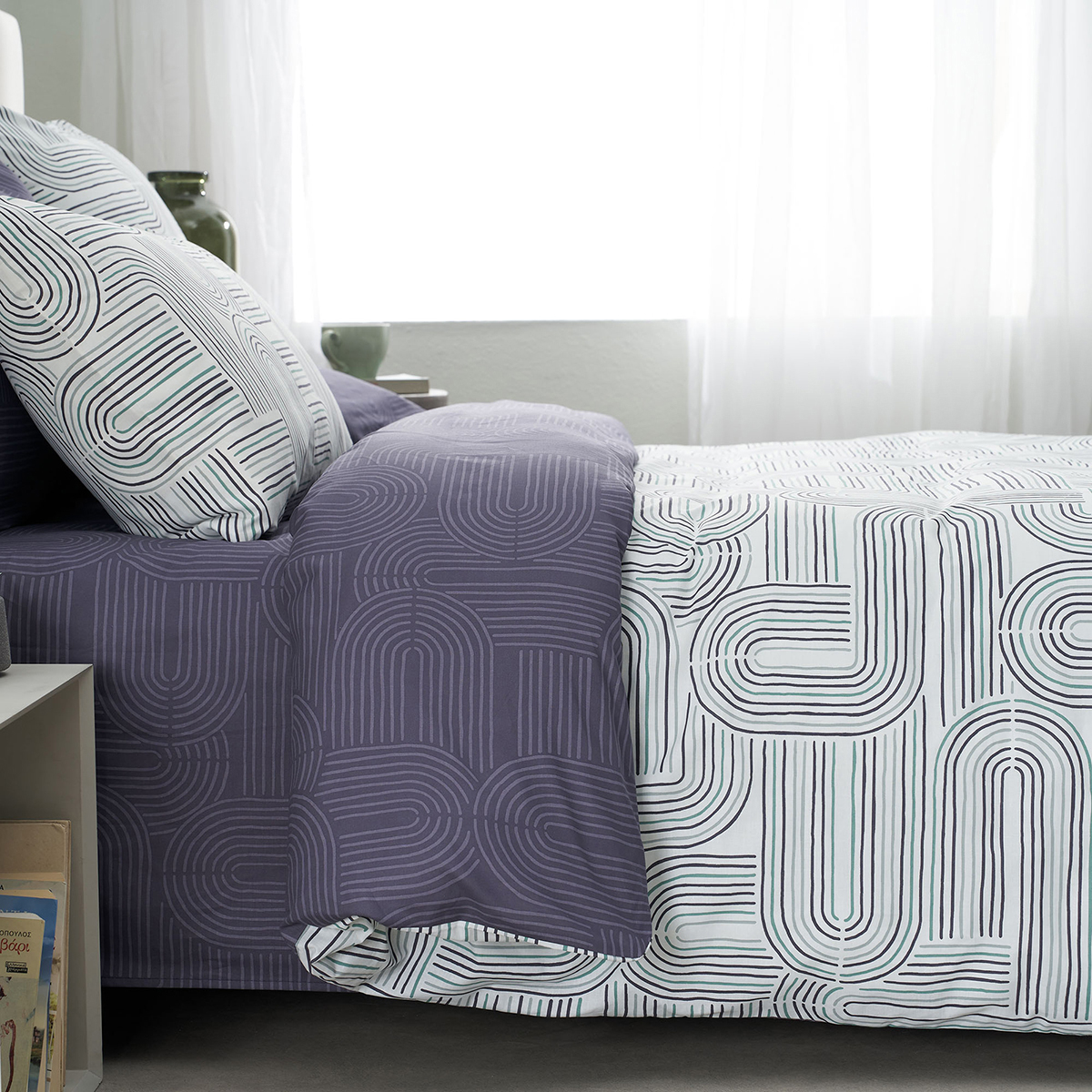 Μονό πάπλωμα από την εταιρεία Vesta Home. Είναι διπλής όψης με την μια μεριά σε εκρού φόντο, με μωβ λεπτομέρειες και μοντέρνο σχέδιο, ενώ από την άλλη σε μωβ χρώμα και μοντέρνο σχέδιο. Το εξωτερικό ύφασμα είναι 100% βαμβάκι 144 κλωστών, απαλό και ανθεκτικό. Εσωτερικά έχει σιλικονούχο πολυεστερική βάτα που προσφέρει ζεστασιά και το καθιστά ιδανικό για τους χειμερινούς μήνες. Συνδυάστε το με τα υπόλοιπα προϊόντα του ίδιου σχεδίου για ένα ολοκληρωμένο αποτέλεσμα.