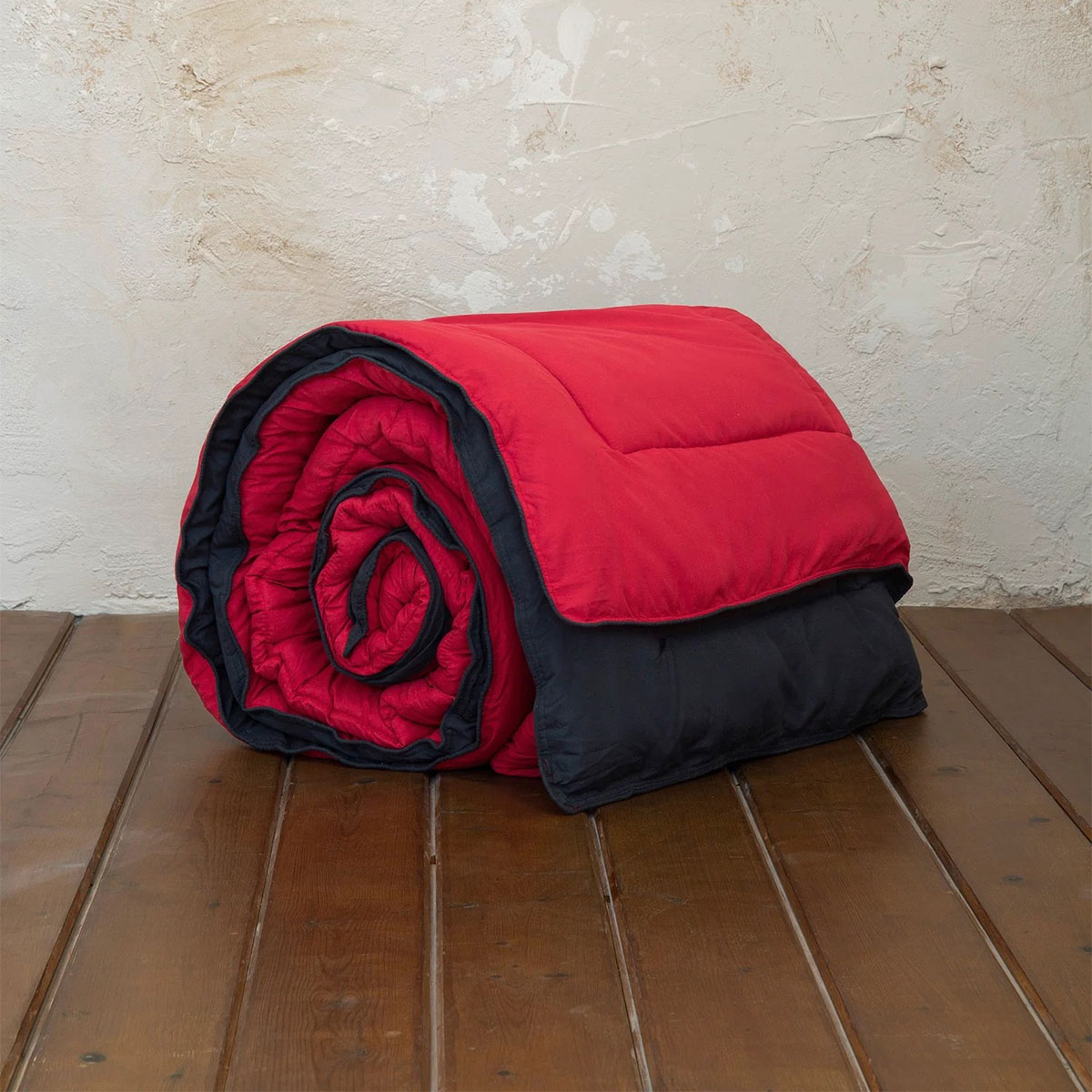 Μονό πάπλωμα διπλής όψης από την εταιρεία Nima με επιλογή ανάμεσα σε 5 συνδυασμούς χρωμάτων. Το εξωτερικό ύφασμα είναι 100% microfiber και εσωτερικά διαθέτει πολυεστερική βάτα, που το καθιστούν ζεστό και ιδανικό για τους χειμωνιάτικους μήνες. Δείκτης Θερμότητας: 9,5 Tog. Συσκευασία σε σακούλα PVC.
