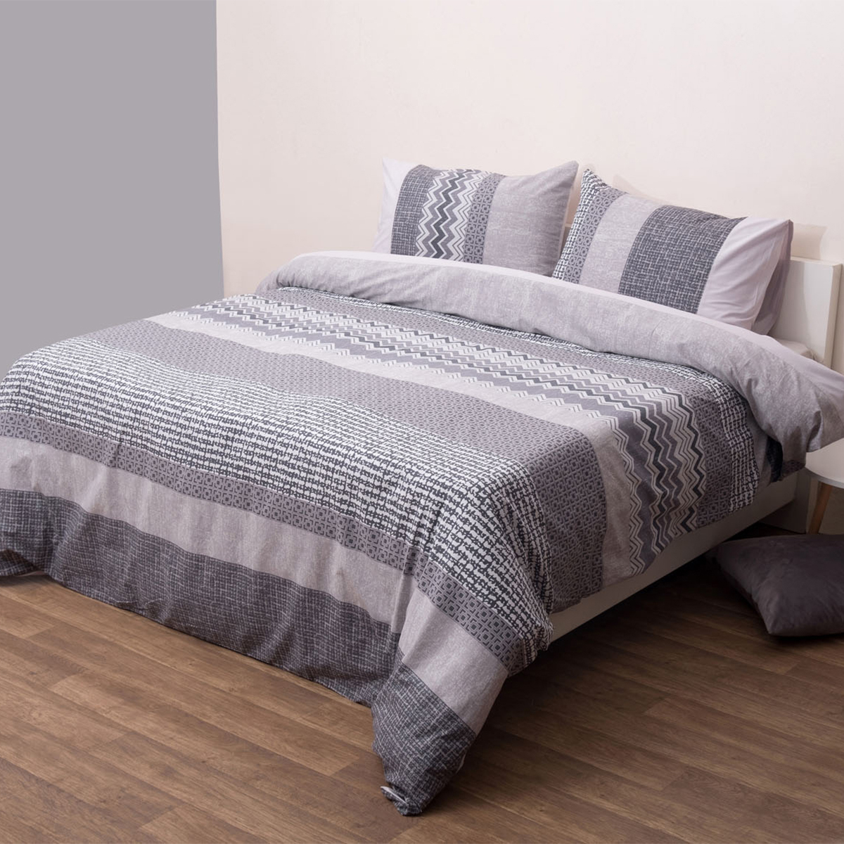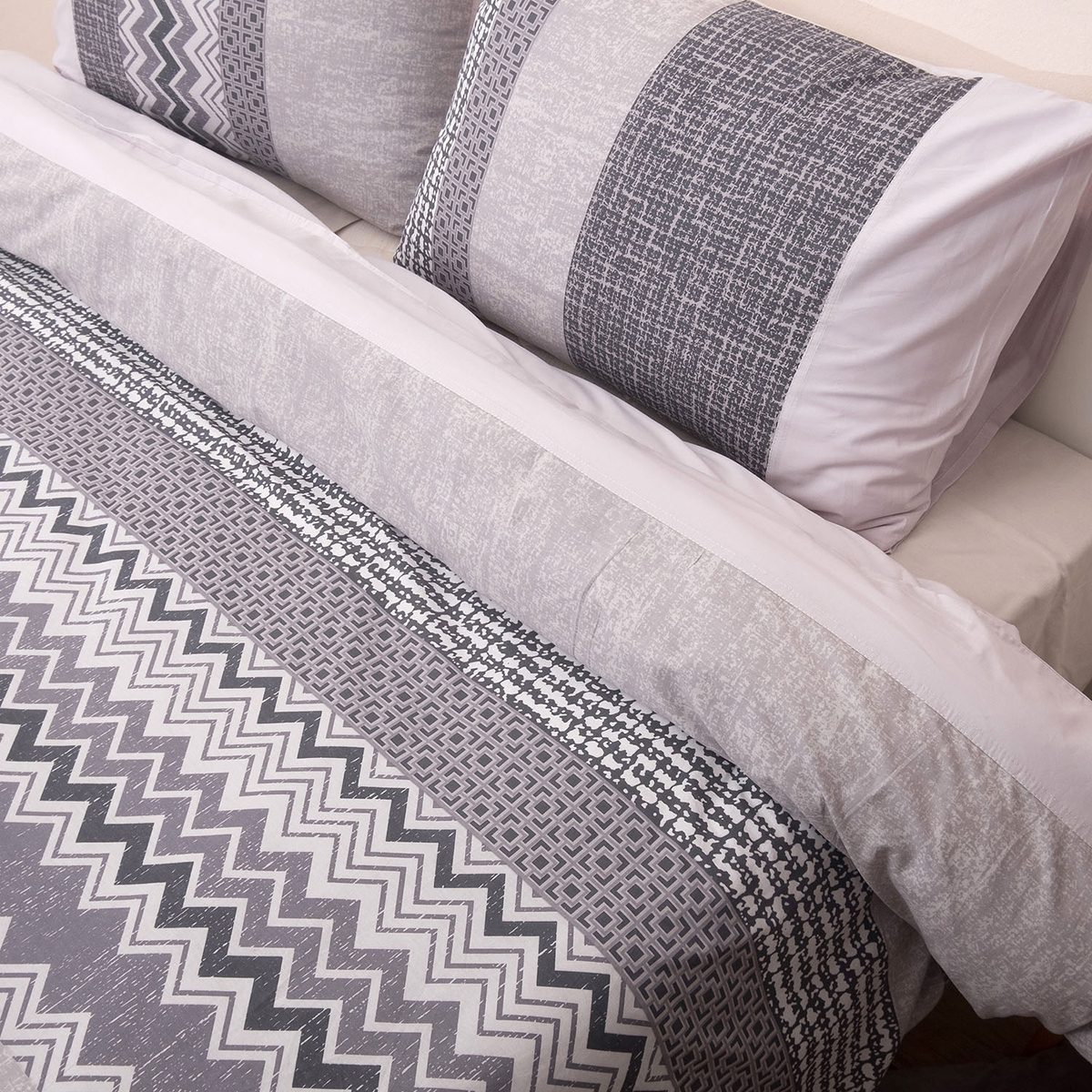 Πάπλωμα υπέρδιπλο από την εταιρεία Anna Riska με μοντέρνο σχέδιο σε γκρι-ανθρακί-λευκές αποχρώσεις. Το ύφασμα του έχει σύνθεση από 100% βαμβάκι περκάλι 170 κλωστών που προσφέρει απαλότητα και ανθεκτικότητα. Εσωτερικά έχει λεπτή πολυεστερική βάτα. Ιδανικό για τους ανοιξιάτικους και καλοκαιρινούς μήνες. Το κουβερλί είναι διπλής όψεως, με την μία πλευρά να έχει το σχέδιο του πανωσέντονου και την άλλη το σχέδιο του κατωσέντονου. Η μαξιλαροθήκη είναι φάκελος με το σχέδιο του πανωσέντονου. **Το σχέδιο στην μαξιλαροθήκη ενδέχεται να διαφέρει από αυτό της φωτογραφίας καθώς η εταιρεία παράγει μαξιλαροθήκες από όλο το σχέδιο του υφάσματος και τις συσκευάζει με τυχαία σειρά.**