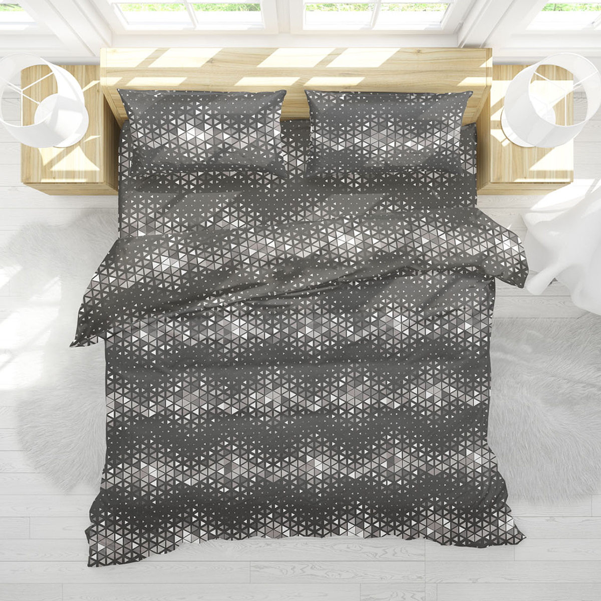 Πάπλωμα υπέρδιπλο σετ σε ανθρακί χρώμα, λευκές-γκρι λεπτομέρειες και γεωμετρικό σχέδιο από την εταιρία Viopros. Το εξωτερικό του ύφασμα είναι κατασκευασμένο από 100% βαμβάκι 145 κλωστών που το καθιστά εξαιρετικά μαλακό και ανθεκτικό και η γέμιση από πολυεστερική βάτα. Στο σετ περιλαμβάνονται οι μαξιλαροθήκες φάκελος με το σχέδιο του πανωσέντονου. **Το σχέδιο στις μαξιλαροθήκες ενδέχεται να διαφέρει από αυτό της φωτογραφίας καθώς η εταιρεία παράγει μαξιλαροθήκες από όλο το σχέδιο του υφάσματος και τις συσκευάζει με τυχαία σειρά**