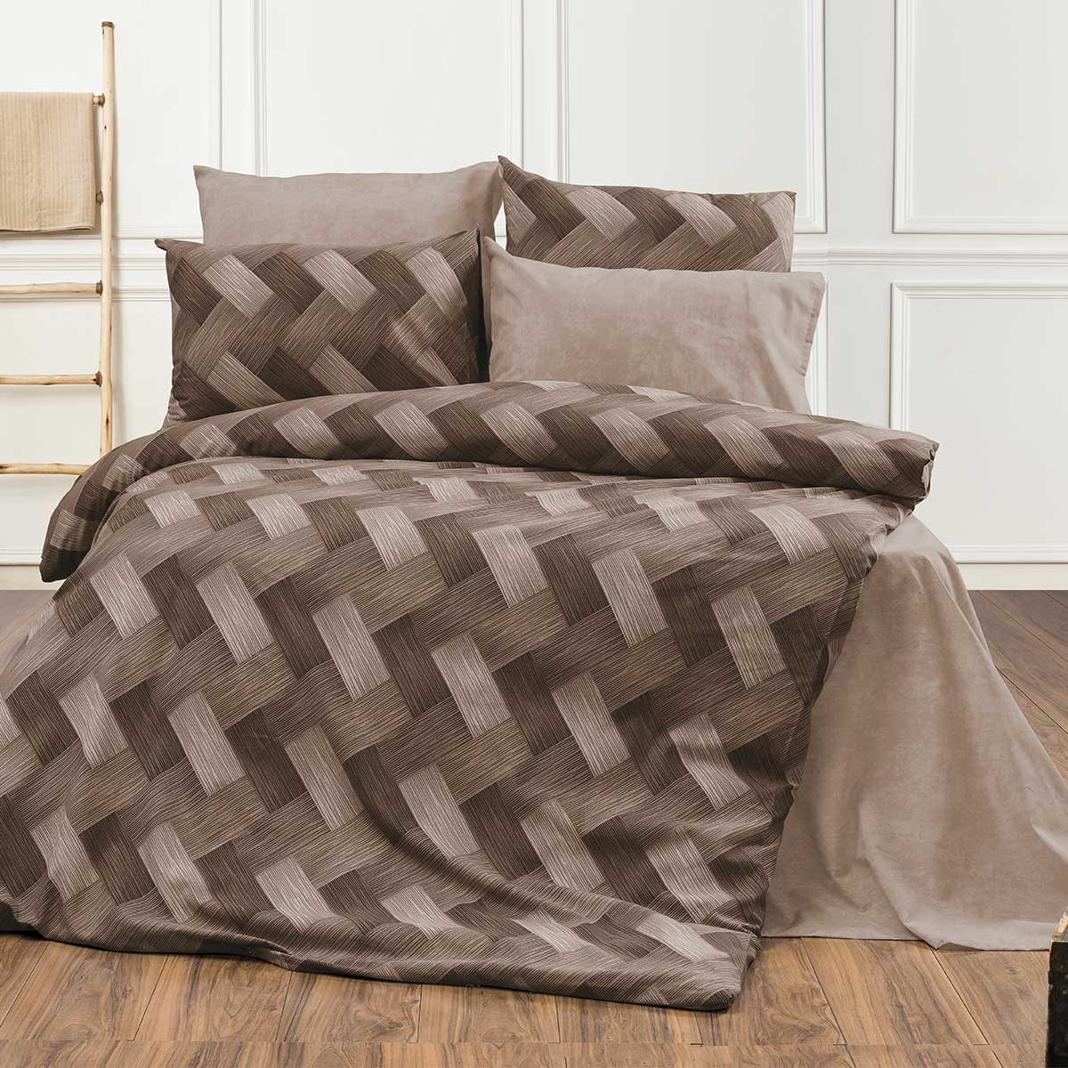 Πάπλωμα υπέρδιπλο διπλής όψης σε καφέ χρώμα, με μπεζ λεπτομέρειες και μοντέρνο σχέδιο στην μια όψη ενώ στην άλλη όψη είναι σε μπεζ χρώμα από την εταιρεία Dimcol. Το εξωτερικό ύφασμα είναι από 70% βαμβάκι 30% polyester 144 κλωστών και η γέμιση από πολυεστερική βάτα βάρους 300gsm. Ιδανικό χειμερινό σκέπασμα. Συνδυάστε το με τα υπόλοιπα είδη της ίδιας σειράς για ένα ολοκληρωμένο αποτέλεσμα. Συσκευασία polybag.