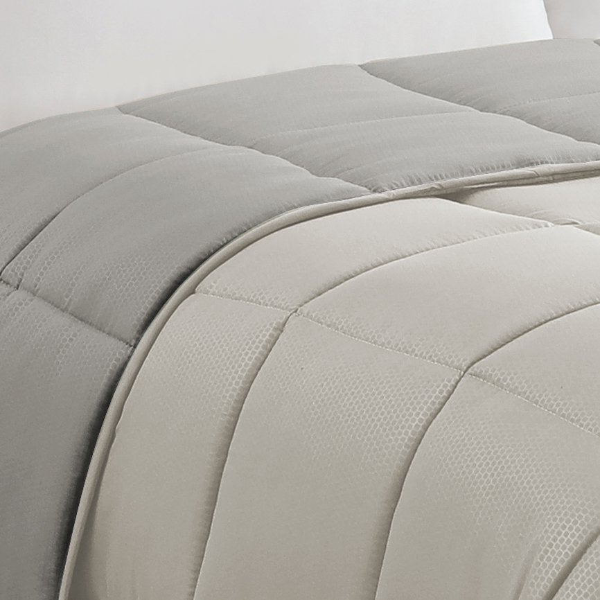 Υπέρδιπλο πάπλωμα διπλής όψης από την εταιρεία Melinen με καπιτονέ επιφάνεια, σε γκρι αποχρώσεις. Το εξωτερικό ύφασμα είναι 100% microfiber που προσφέρει μοναδική απαλότητα. Η γέμιση από 100% 3D Hollowfiber το καθιστά αφράτο, υποαλλεργικό και εύκολα πλενόμενο. Με βάρος 300gsm, είναι ιδανική επιλογή για τους χειμερινούς μήνες. Δείκτης θερμότητας: 9 Tog