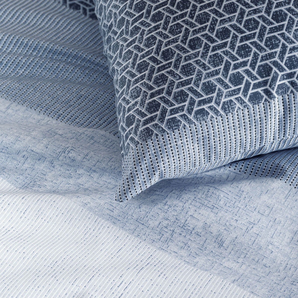 Υπέρδιπλο πάπλωμα σε μπλε χρώμα, με γαλάζιες λεπτομέρειες και μοντέρνο σχέδιο από την εταιρεία Rythmos. Είναι κατασκευασμένο από 50% polyester 50% βαμβάκι 144 κλωστών, που προσφέρει απαλότητα και ανθεκτικότητα ενώ η γέμιση είναι από λεπτή πολυεστερική βάτα. Στο σετ περιλαμβάνονται οι μαξιλαροθήκες φάκελος με το σχέδιο του πανωσέντονου. **Το σχέδιο στις μαξιλαροθήκες ενδέχεται να διαφέρει από αυτό της φωτογραφίας, καθώς η εταιρεία παράγει μαξιλαροθήκες από όλο το σχέδιο του υφάσματος και τις συσκευάζει με τυχαία σειρά.** Συνδυάστε τα με τα υπόλοιπα προϊόντα του ίδιου σχεδίου για ένα ολοκληρωμένο αποτέλεσμα.