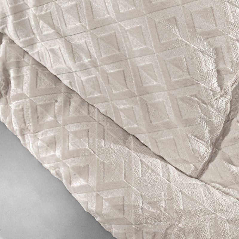 Πάπλωμα γίγας σε εκρού χρώμα και ανάγλυφη επιφάνεια της εταιρείας Guy Laroche. Το ύφασμά του είναι βελουτέ από 100% polyester ενώ η γέμιση από πολυεστερική βάτα. Ιδανικό σκέπασμα για τους φθινοπωρινούς και χειμερινούς μήνες του χρόνου.