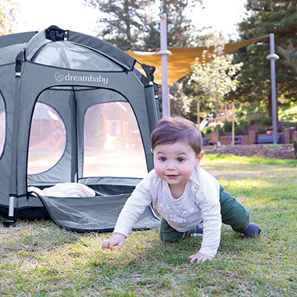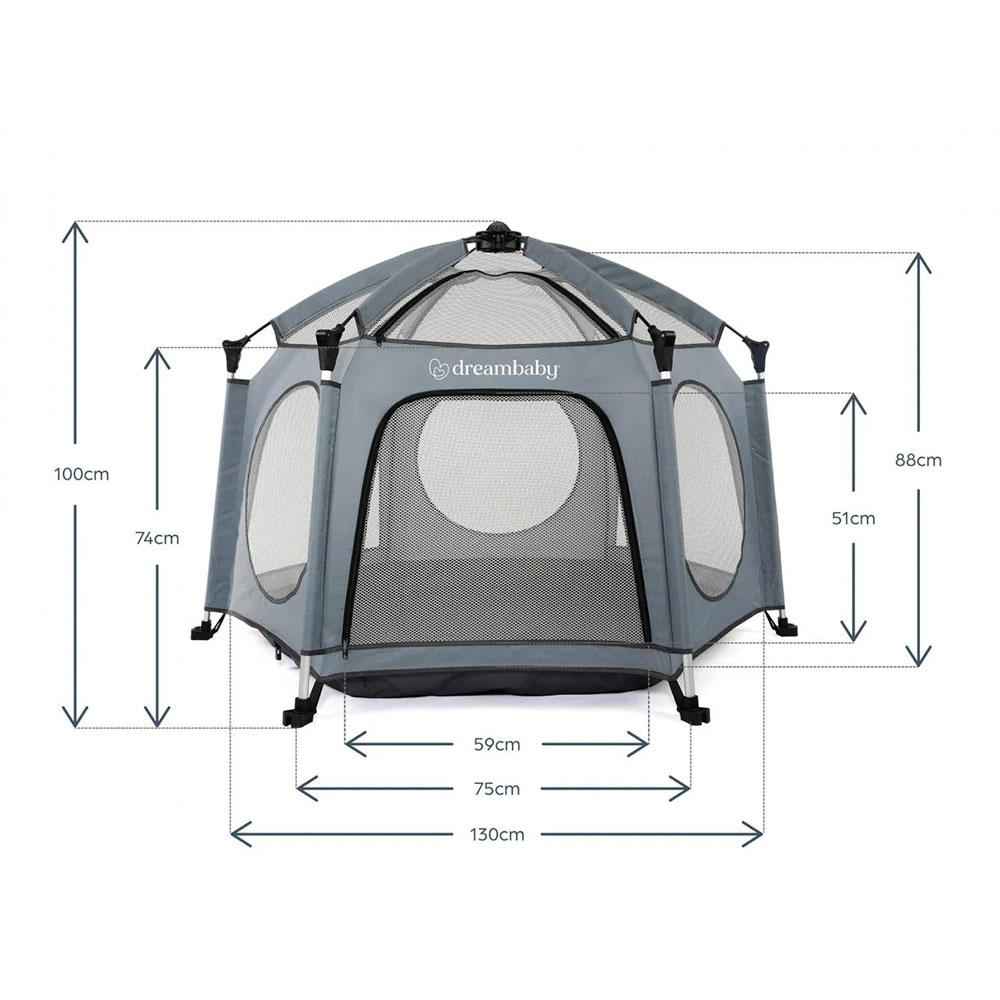 Βρεφικό πάρκο της εταιρείας Dream Baby σε μπλε χρώμα. Είναι κατάλληλο για εσωτερικό και εξωτερικό χώρο καθώς έχει και καλύμματα με αντηλιακή προστασία. Τα καλύμματα UV που διαθέτει προστατεύουν από τις ακτίνες του ήλιου. Ανοίγει εύκολα και γρήγορα. Τοποθετείται με πασσάλους γρασιδιού στο έδαφος, κατά την εξωτερική χρήση. Διαθέτει βολικό άνοιγμα Peek-A-Boo με φερμουάρ για πρόσβαση χωρίς προβλήματα. Οι πλευρές πλέγματος διασφαλίζουν ότι το παιδί σας παραμένει άνετο με επαρκή ροή αέρα. Είναι φορητό και ιδιαίτερα ελαφρύ στη μεταφορά. Ιδανικό για κάθε οικογενειακή εξόρμηση. Διαθέτει τσάντα αποθήκευσης και μεταφοράς. Συμμορφώνεται με τα πρότυπα ASTM και EN.ς