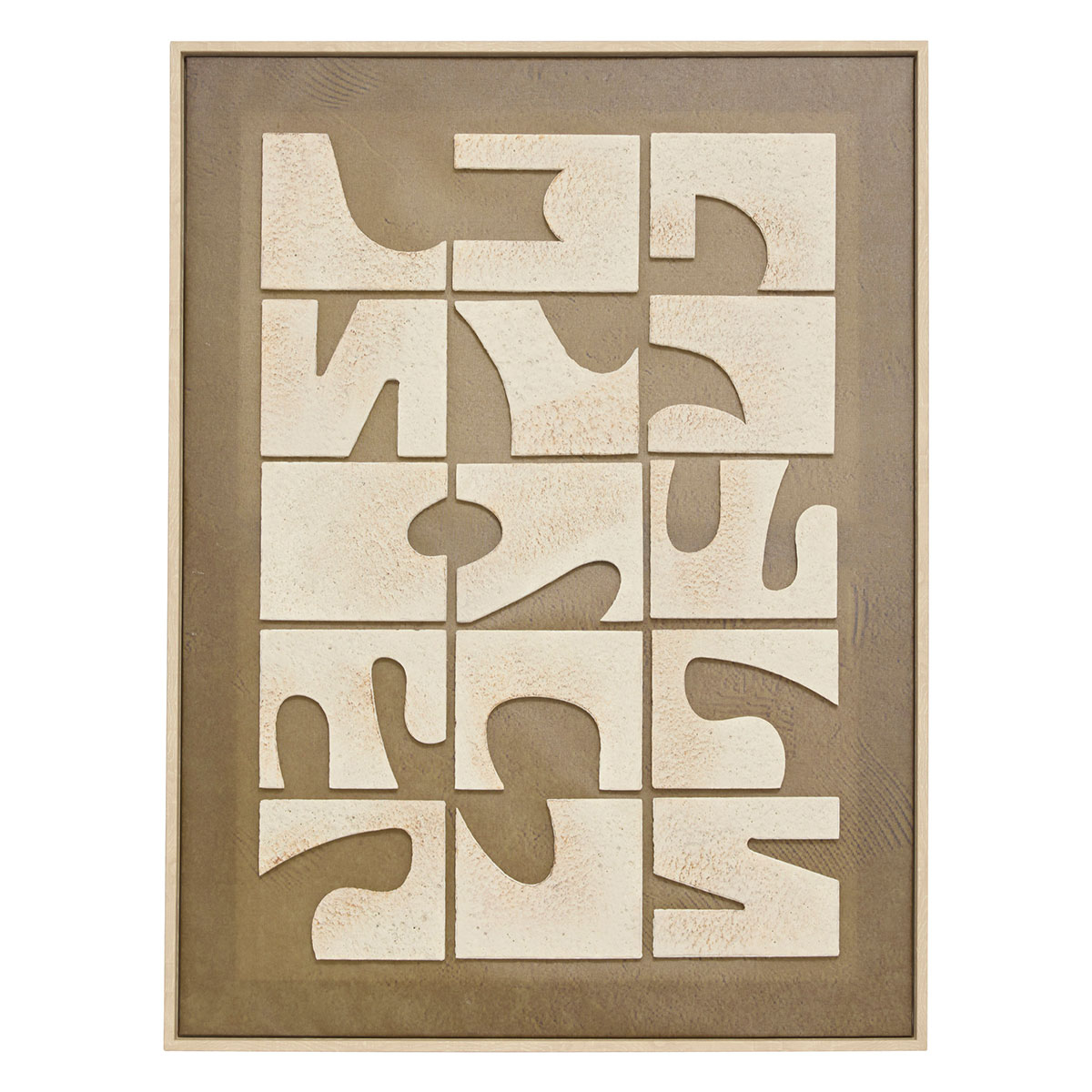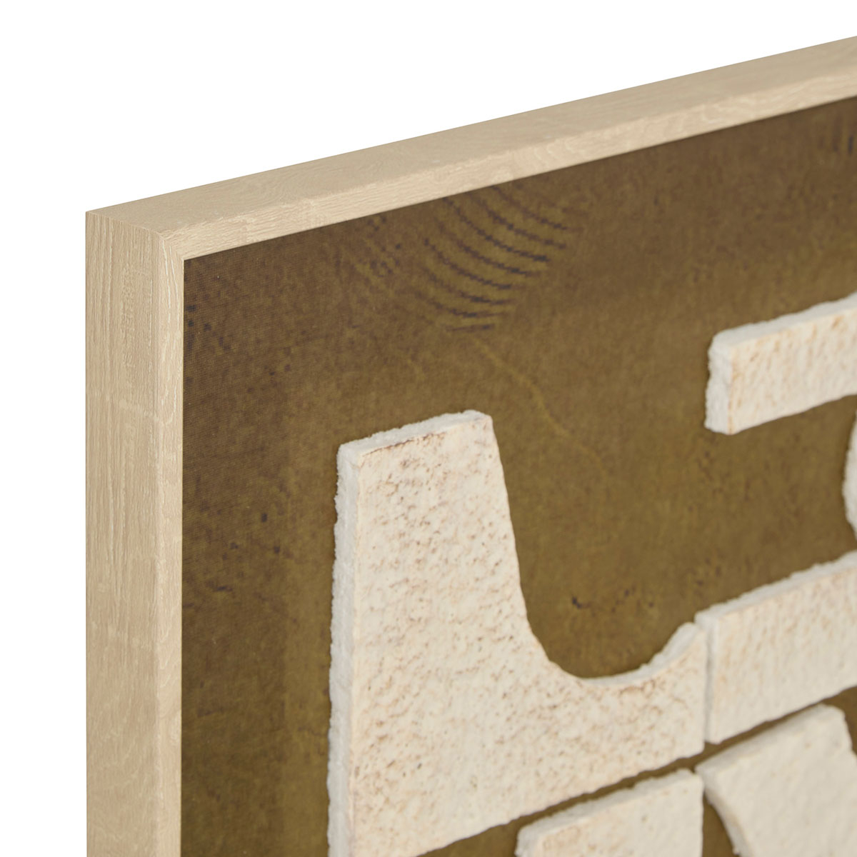 Πίνακας τοίχου με κορνίζα που θα χαρίσει μοναδικό ύφος στο χώρο σας. Ο καμβάς είναι κατασκευασμένος από πλαστικό υλικό σε μπεζ-λαδί χρώμα με ανάγλυφο γεωμετρικό σχέδιο σε μπεζ χρώμα. Το κάδρο είναι από ξύλο MDF_Ε1 σε μπεζ χρώμα και η πλάτη του πίνακα από ξύλο. Μπορεί να κρεμαστεί κάθετα ή οριζόντια. Συνδυάστε τον με τα υπόλοιπα είδη της ίδιας συλλογής για ένα ολοκληρωμένο αποτέλεσμα.