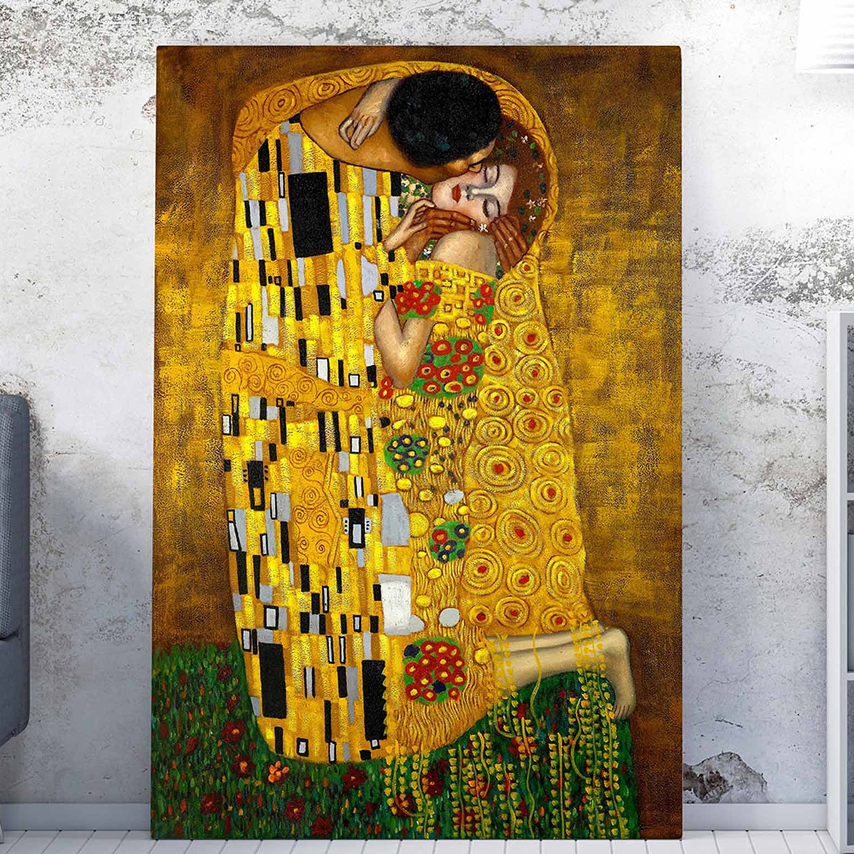Αντίγραφο του έργου The Kiss του Gustav Klimt σε διαστάσεις 50x70. Ο πίνακας είναι κατασκευασμένος από καμβά 50% polyester και 50% βαμβάκι, ενώ ο σκελετός του είναι ξύλινος. Ιδανικός για να διακοσμήσει μοναδικά όποιο τοίχο του σπιτιού σας επιθυμείτε.