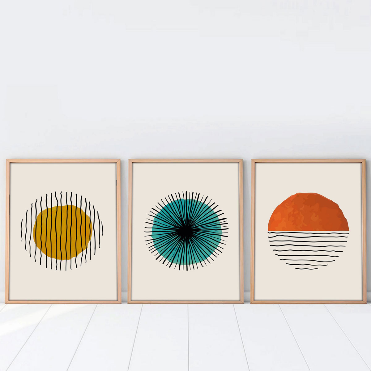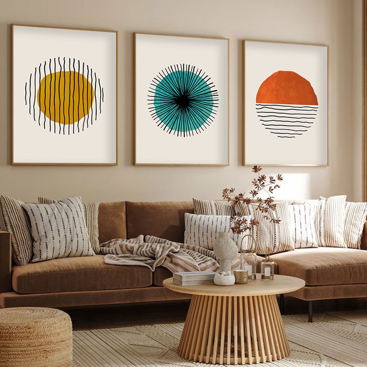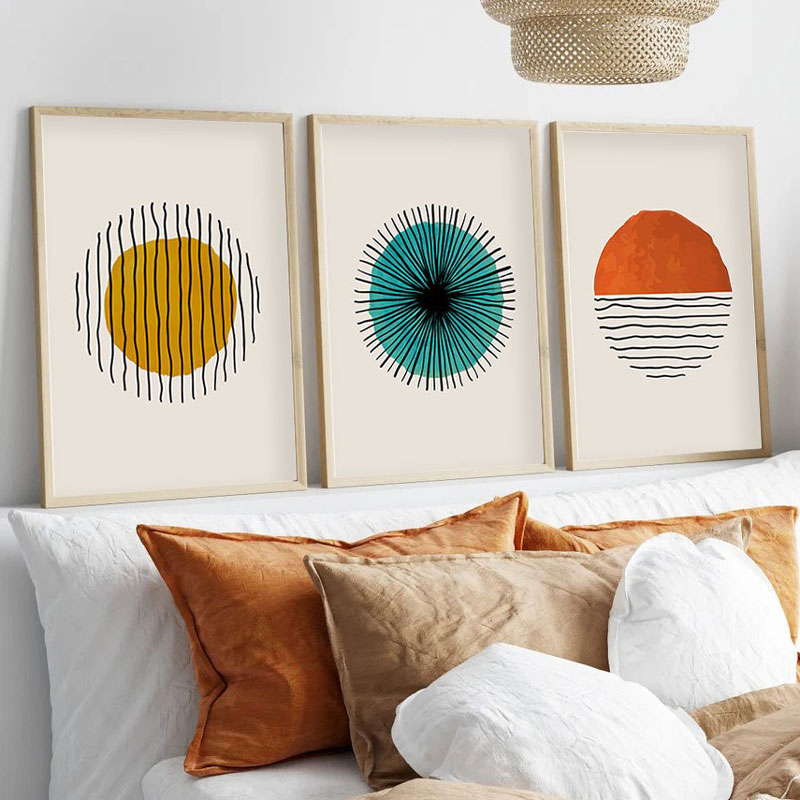 Πίνακες σε σετ 3 τεμαχίων σε πολύχρωμες αποχρώσεις με μοντέρνο σχέδιο. Ο καμβάς είναι από ξύλο MDF και η κορνίζα είναι από μασίφ ξύλο. Ιδανικοί για να διακοσμήσουν μοναδικά όποιο τοίχο του σπιτιού σας επιθυμείτε.