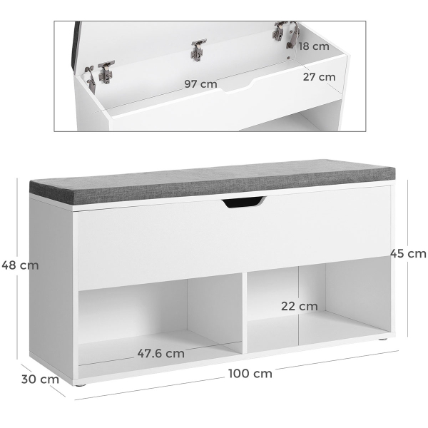 | VasagleΠαγκάκι Εισόδου Με Αποθηκευτικό Χώρο - Παπουτσοθήκη (100x30x48) Vasagle LHS21WT