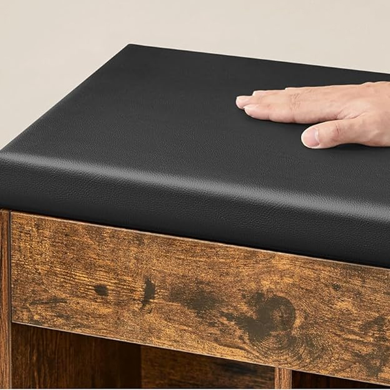 Παγκάκι εισόδου με αποθηκευτικό χώρο από την εταιρεία Vasagle. Είναι κατασκευασμένο από μοριοσανίδα σε καφέ ρουστίκ χρώμα. Στην επάνω πλευρά έχει υφασμάτινο κάθισμα από απομίμηση δέρματος με εσωτερική επένδυση από υλικό foam, για να κάθεστε άνετα όταν βάζετε ή βγάζετε τα παπούτσια σας. Διαθέτει αποθηκευτικό χώρο κάτω από το κάθισμα, για να τοποθετείτε τα αντικείμενα σας. Έχει 3 ράφια που μπορείτε να χρησιμοποιήσετε για να τακτοποιήσετε αντικείμενα ή και σαν παπουτσοθήκη περίπου 7 θέσεων. Διαθέτει λαβές για εύκολη μεταφορά. Μέγιστο Βάρος Αντοχής 136kg Συνδυάστε το με τα υπόλοιπα είδη της ίδιας σειράς για ένα ολοκληρωμένο αποτέλεσμα στο χώρο σας.*Το προϊόν έρχεται αμοντάριστο και συναρμολογείται βάσει οδηγιών.*