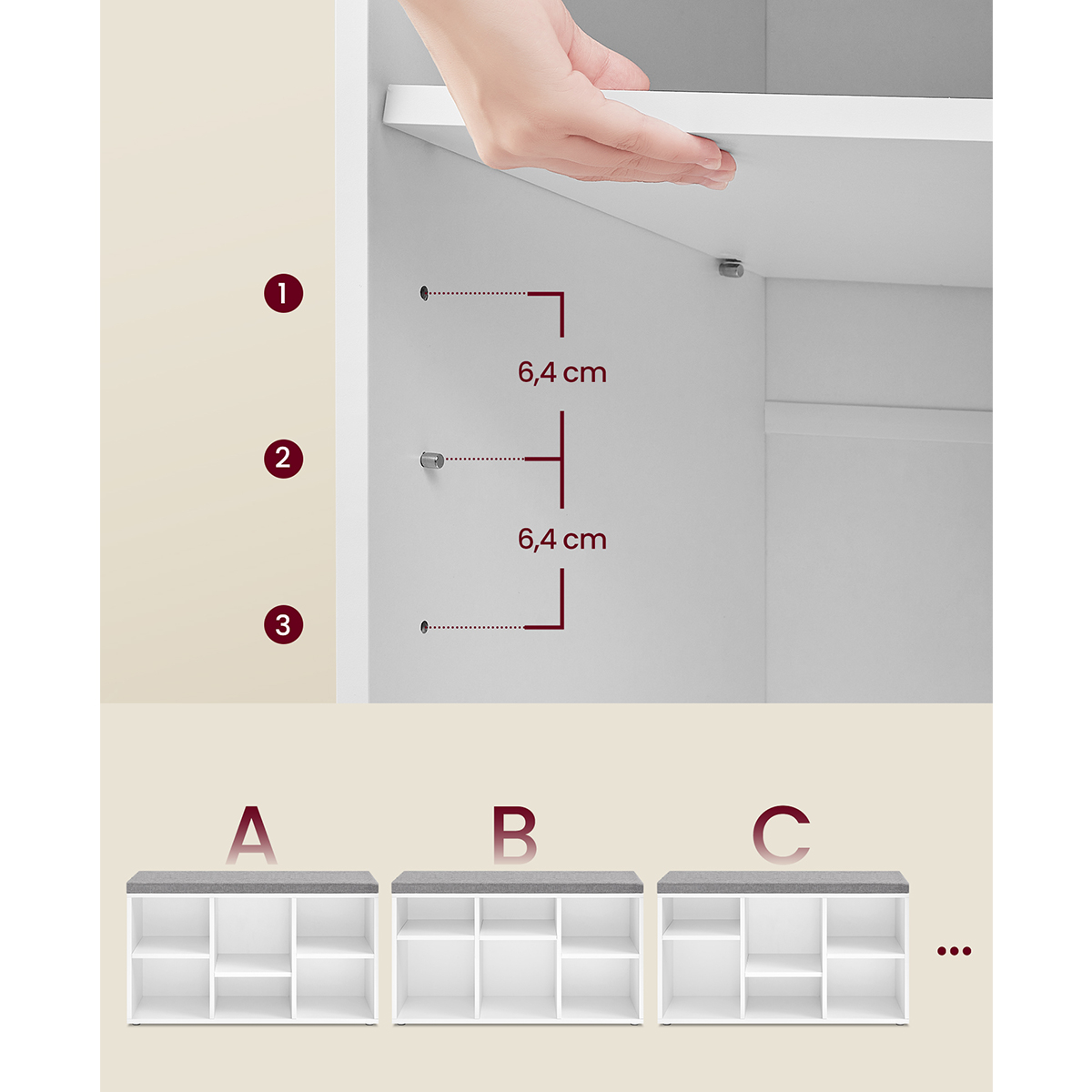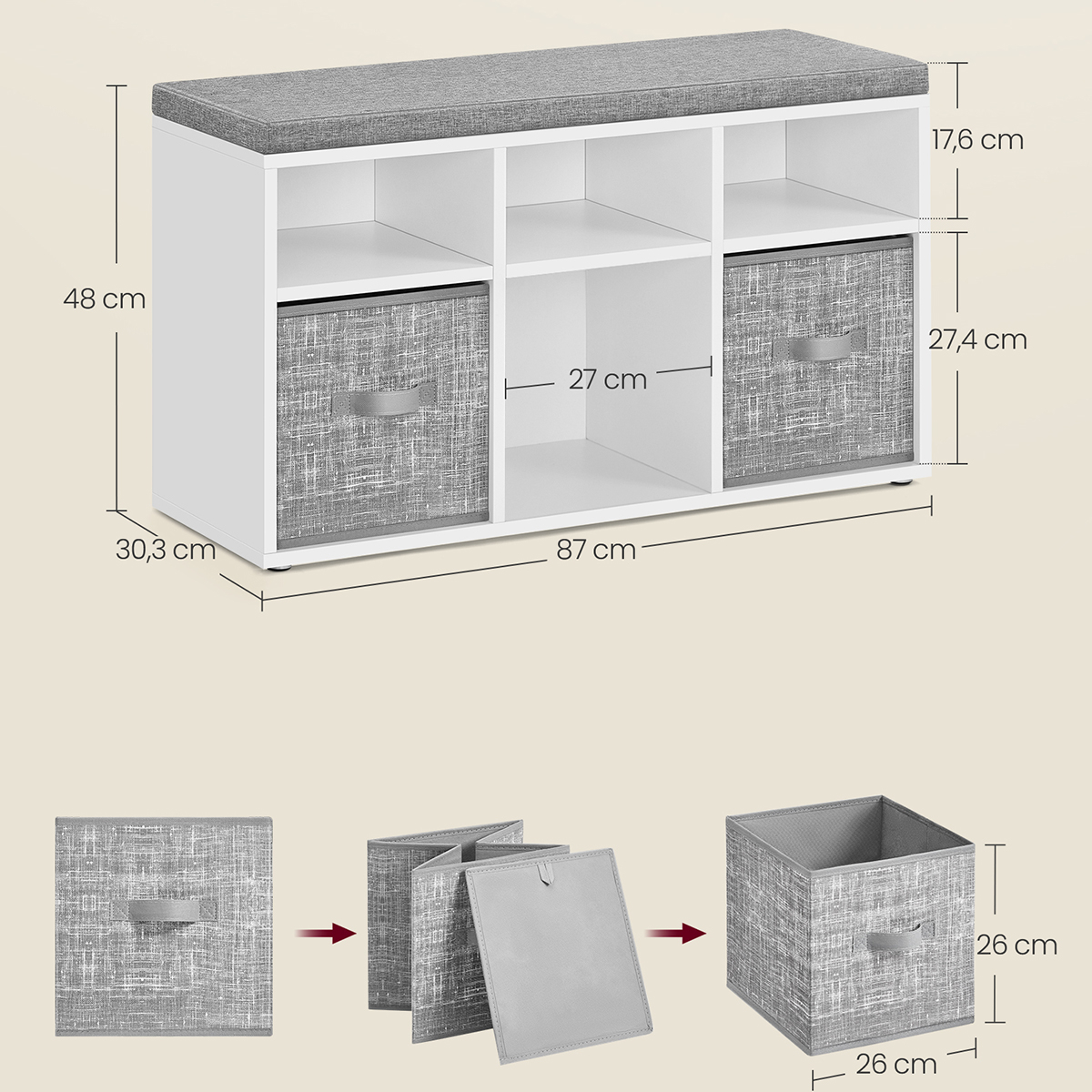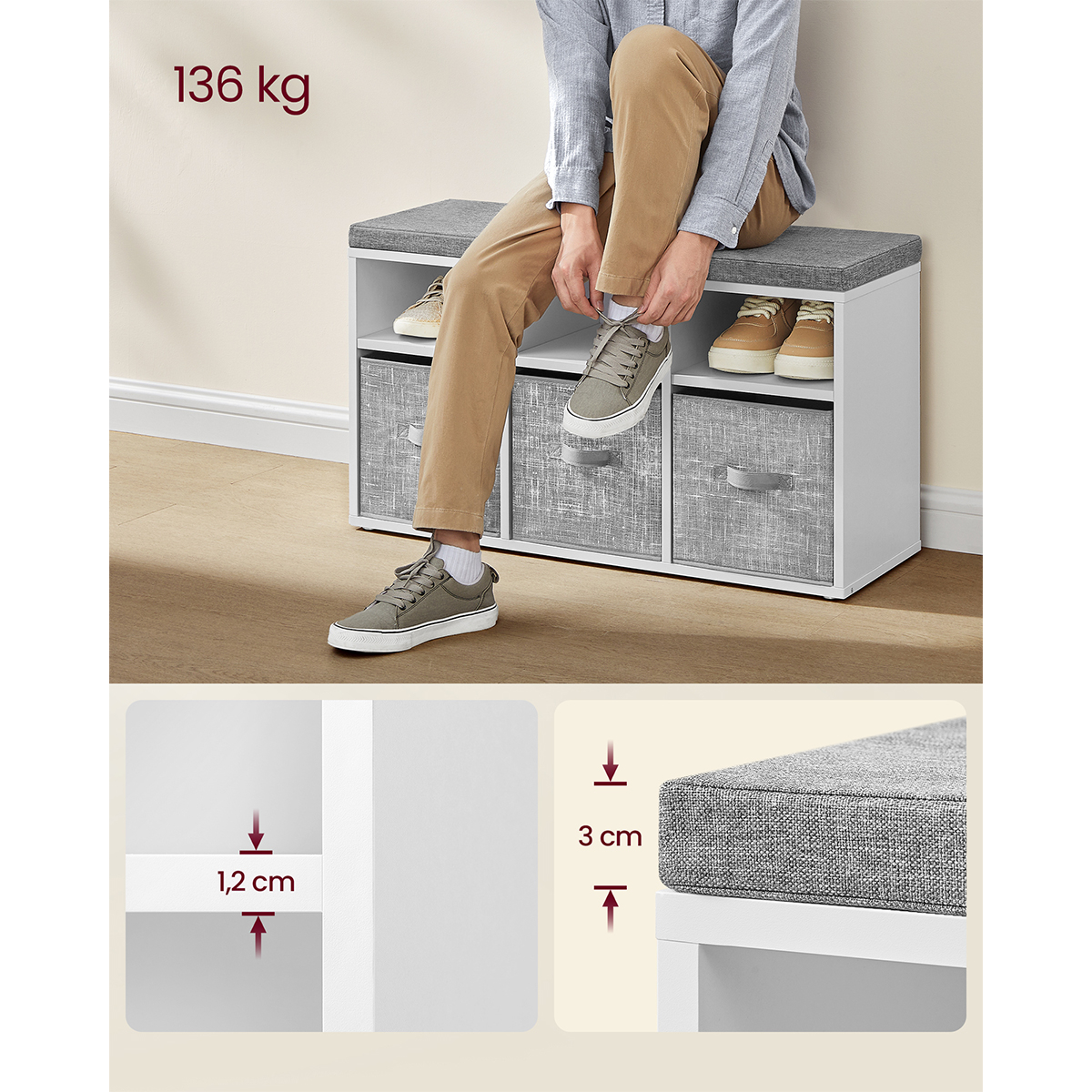 | VasagleΠαγκάκι Εισόδου Με Αποθηκευτικό Χώρο & 3 Κουτιά Αποθήκευσης (87x30.3x48) Vasagle LSB101W14