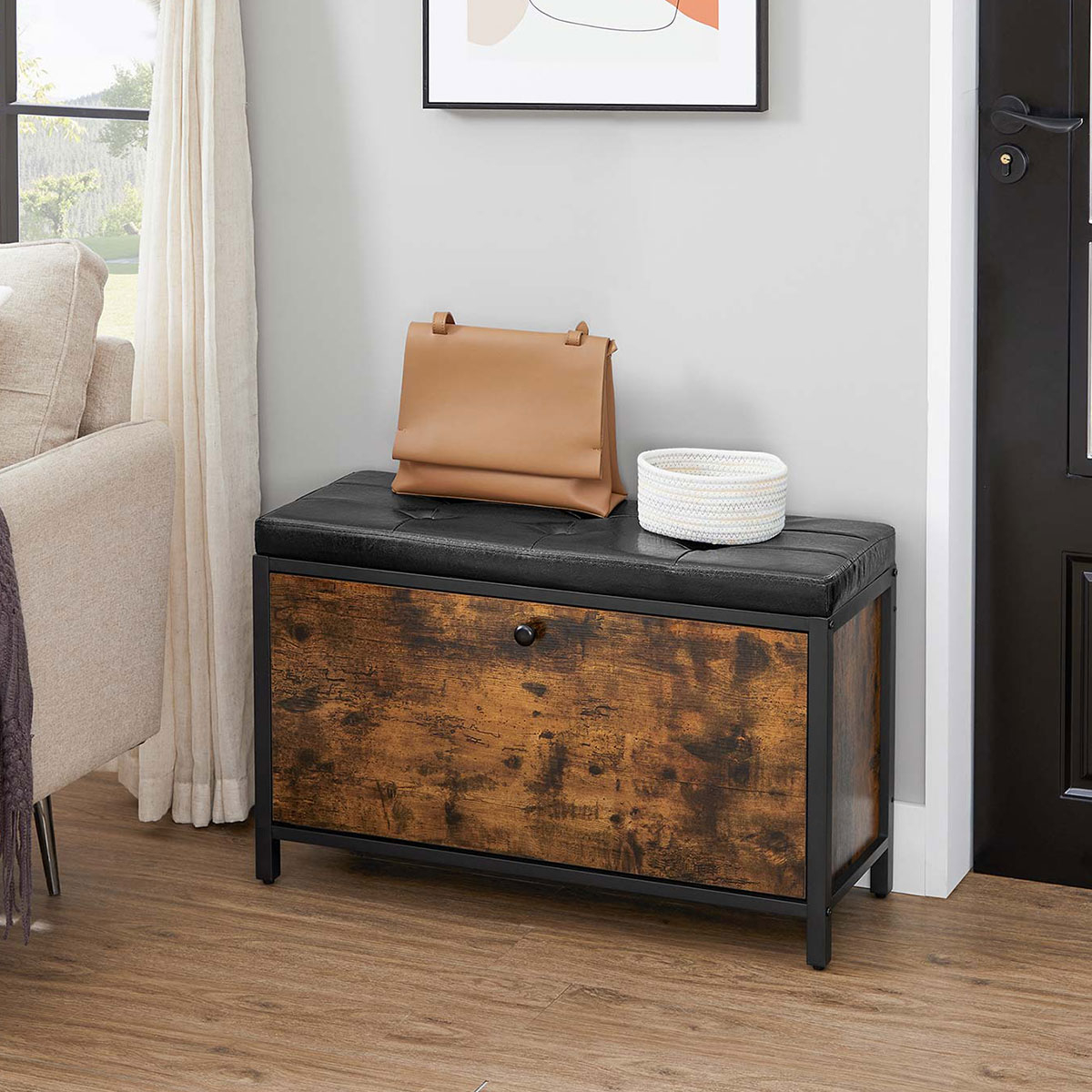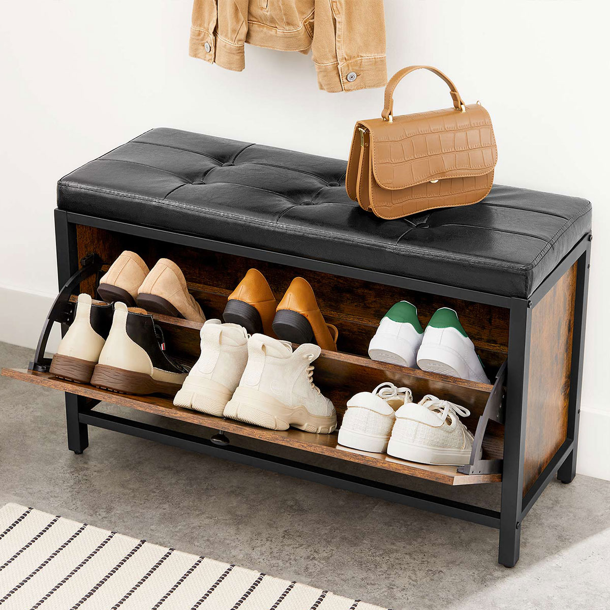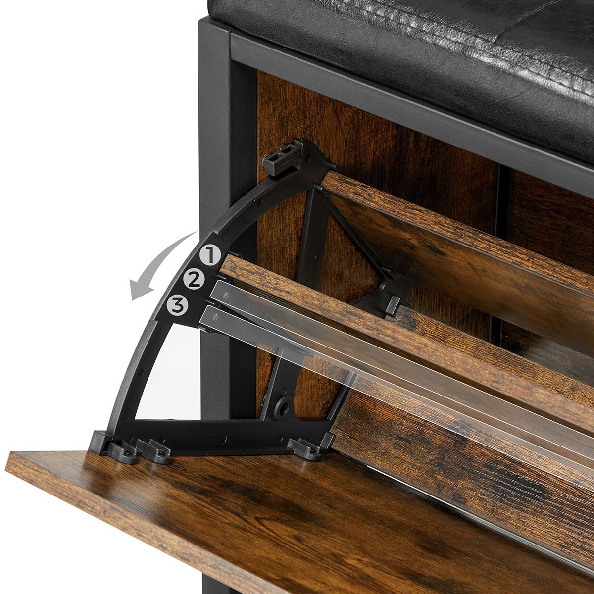 Παπουτσοθήκη σε φυσική απόχρωση ξύλου με μαύρα μέρη και μοντέρνο σχεδιασμό από την εταιρεία Vasagle. Το ντουλάπι εσωτερικά διαθέτει ράφια που μπορείτε να ρυθμίσετε ανάλογα με το μέγεθος των παπουτσιών σας. Κάθε ράφι χωράει περίπου 3 ζευγάρια παπούτσια. Στην επάνω πλευρά έχει υφασμάτινο κάθισμα για να κάθεστε άνετα όταν βάζετε ή βγάζετε τα παπούτσια σας. Το προϊόν έρχεται αμοντάριστο και συναρμολογείται βάσει οδηγιών.