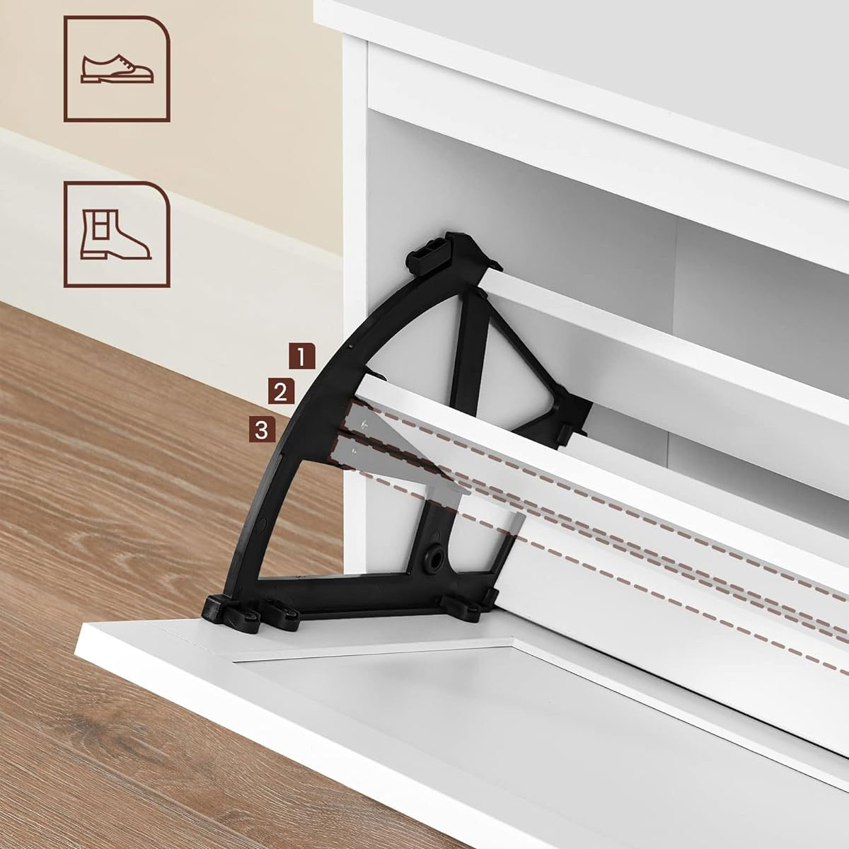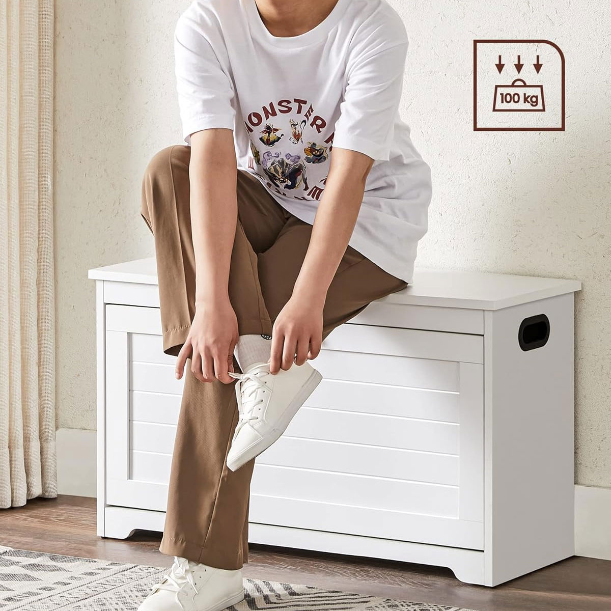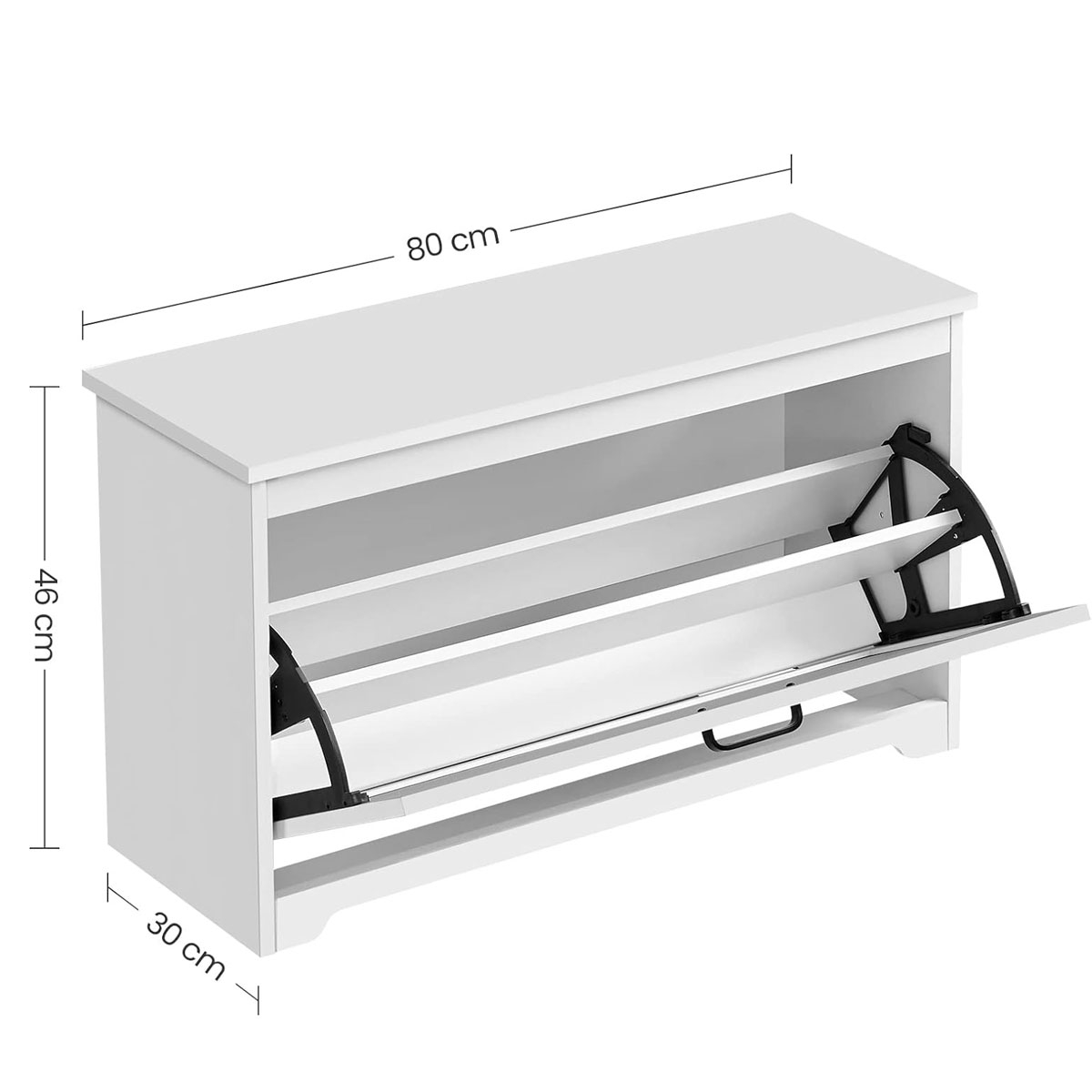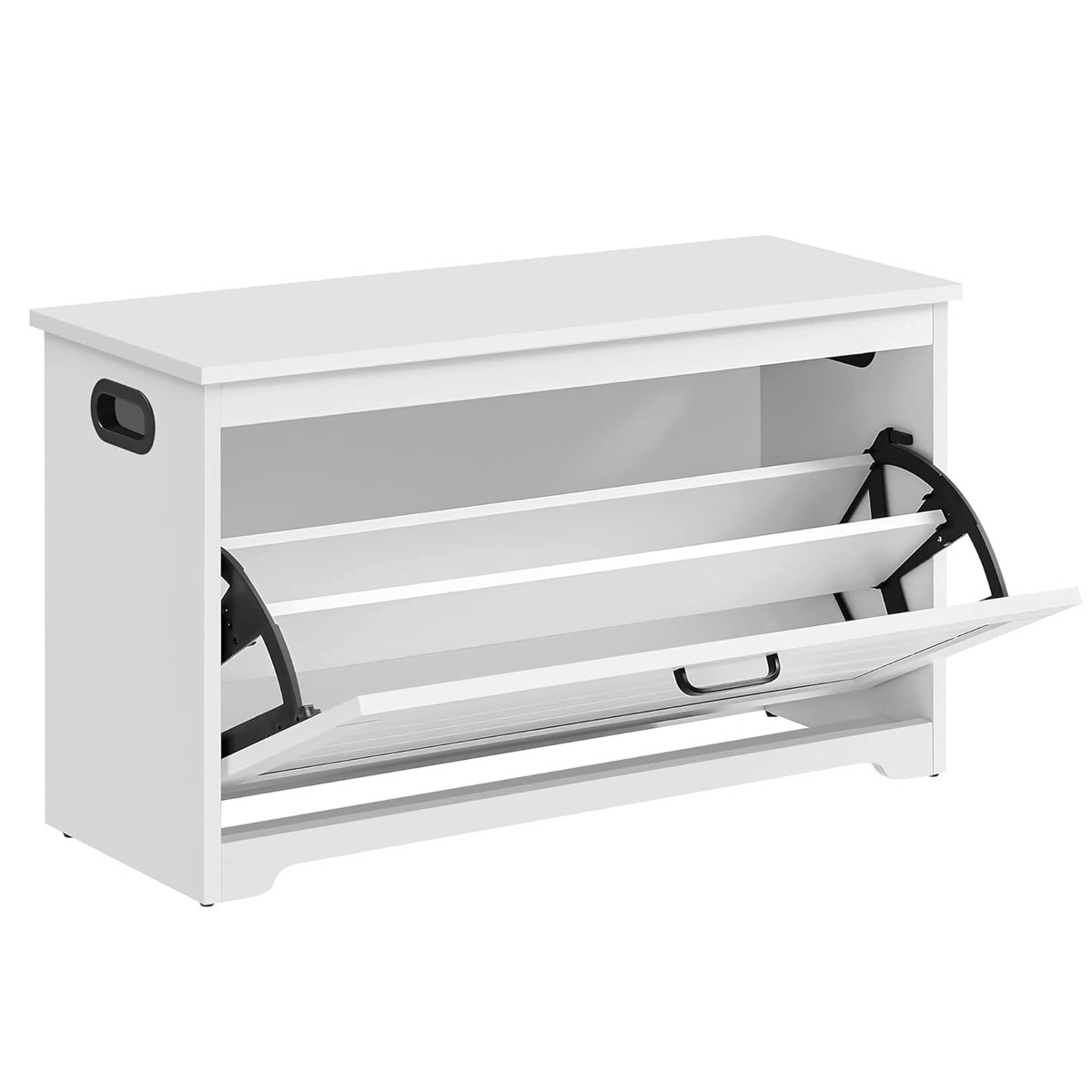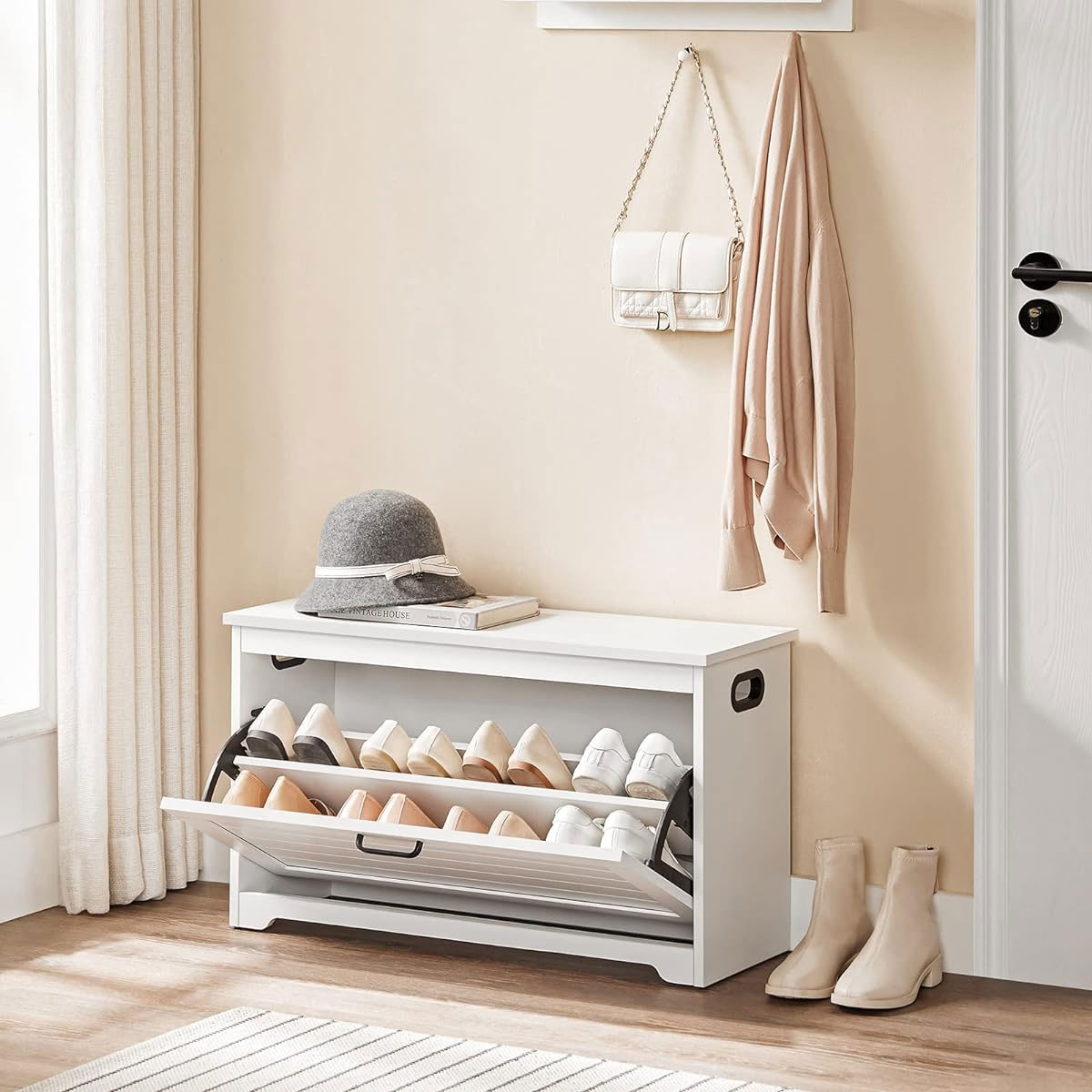 Παγκάκι - παπουτσοθήκη 8 θέσεων σε λευκό χρώμα από την εταιρεία Vasagle. Ιδανικό για να κάθεστε, να φοράτε τα παπούτσια σας και να τα αποθηκεύετε. Το προϊόν έρχεται αμοντάριστο και συναρμολογείται βάσει οδηγιών.
