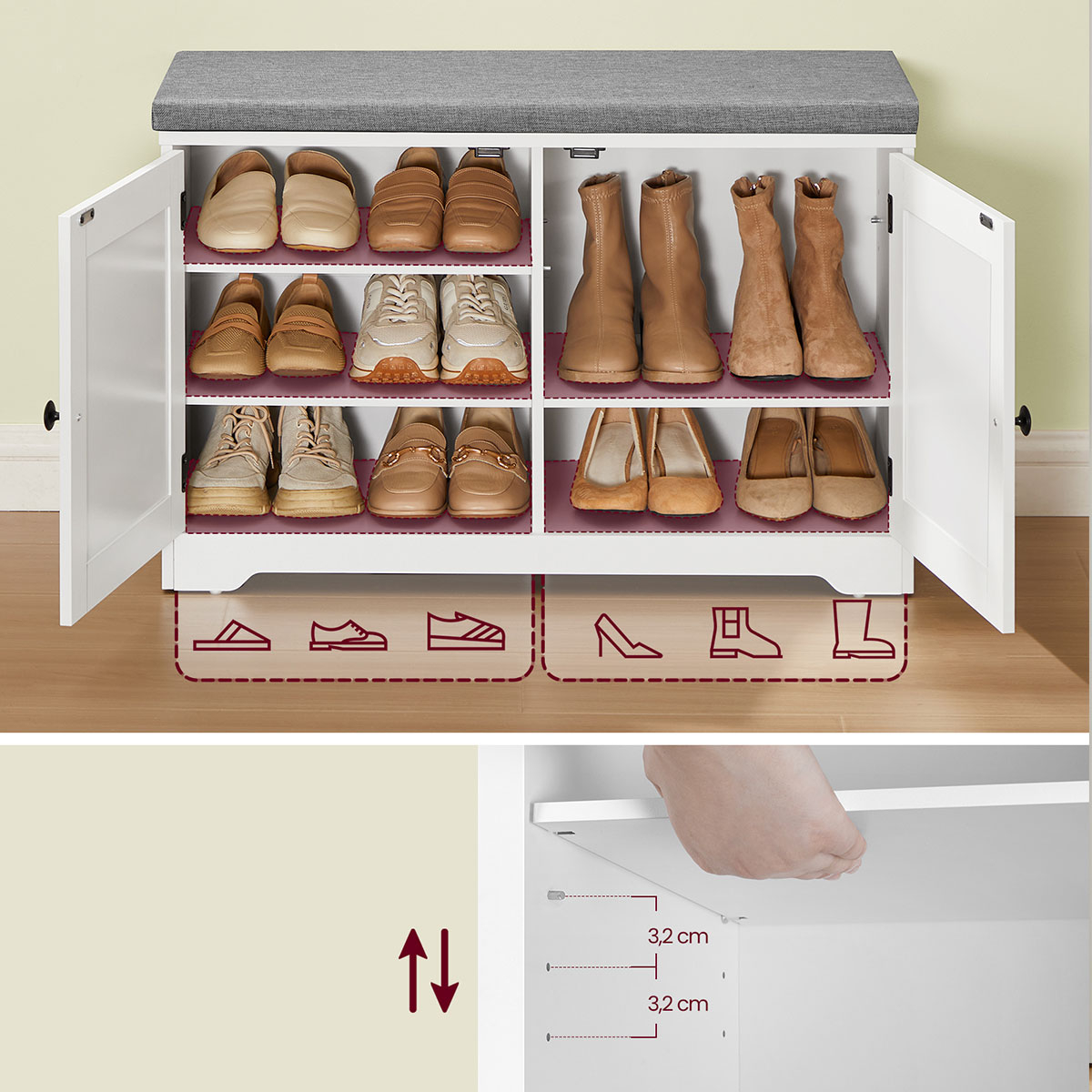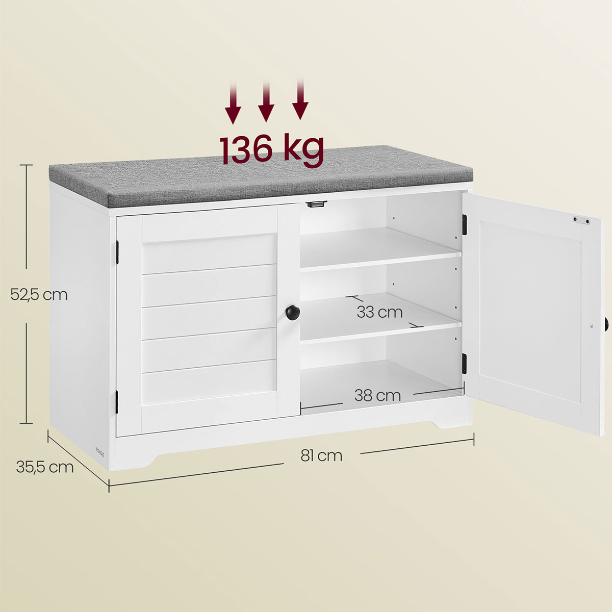 | VasagleΠαγκάκι Με Αποθηκευτικό Χώρο - Παπουτσοθήκη (81x35.5x52.5) Vasagle LSB034W01