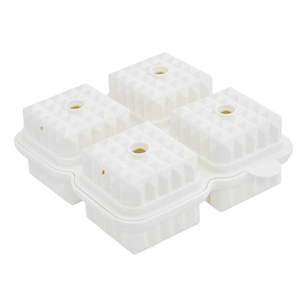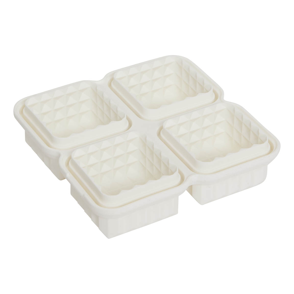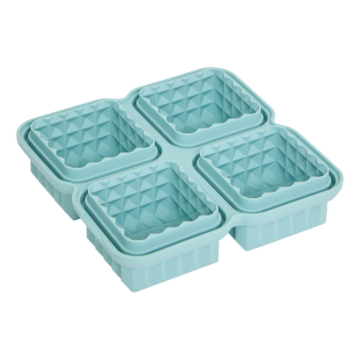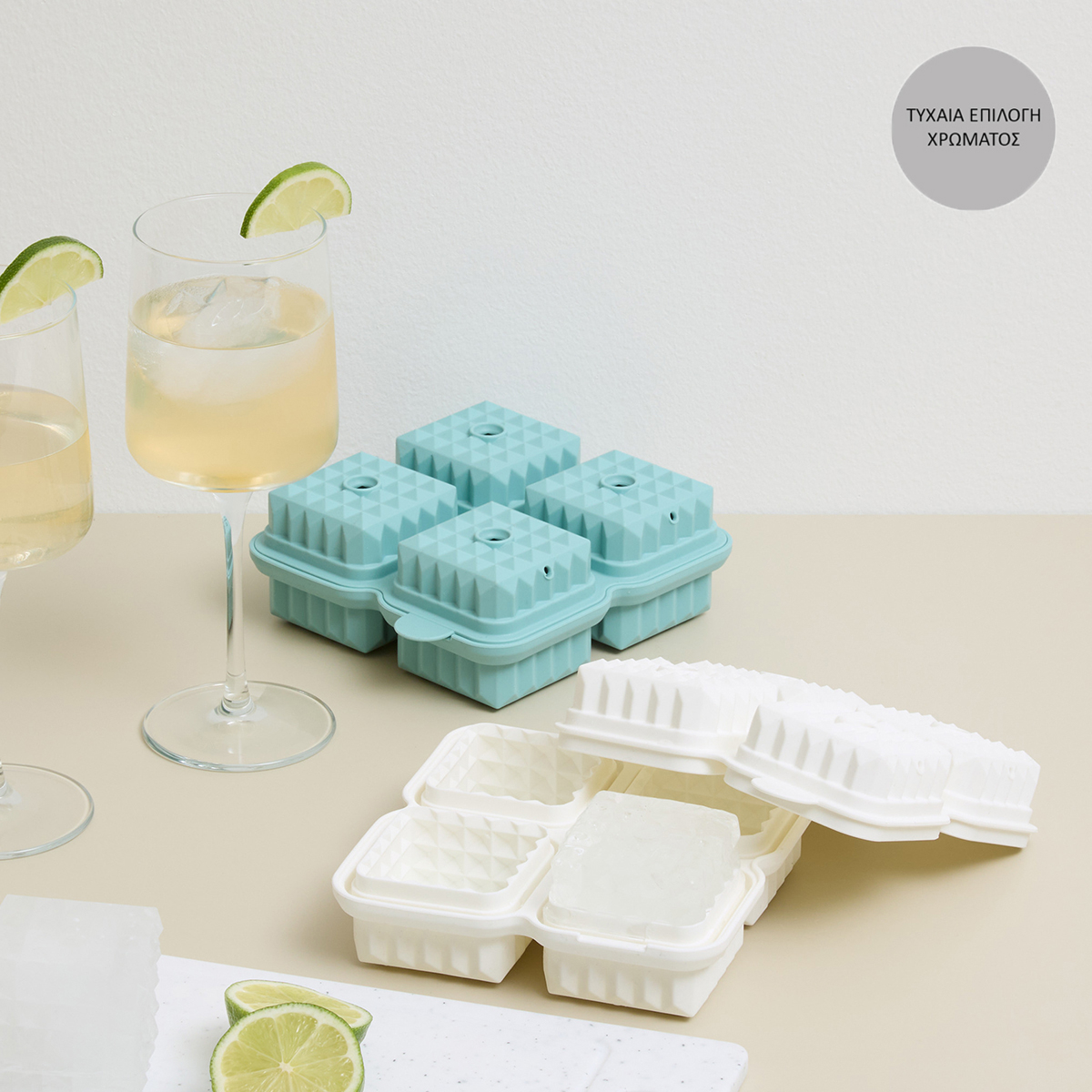 Παγοθήκη 4 θέσεων κατασκευασμένη από σιλικόνη. Για μεγάλα τετράγωνα παγάκια με εντυπωσιακό ανάγλυφο, που βγαίνουν πολύ εύκολα χάρη στο υλικό της θήκης. *Η επιλογή του χρώματος που αποστέλλεται γίνεται τυχαία.*