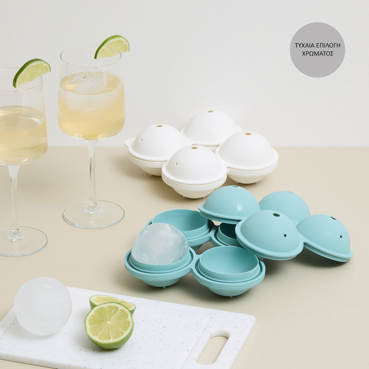 Παγοθήκη 4 θέσεων κατασκευασμένη από σιλικόνη. Για μεγάλα στρογγυλά παγάκια που βγαίνουν πολύ εύκολα χάρη στο υλικό της θήκης. *Η επιλογή του χρώματος που αποστέλλεται γίνεται τυχαία.*
