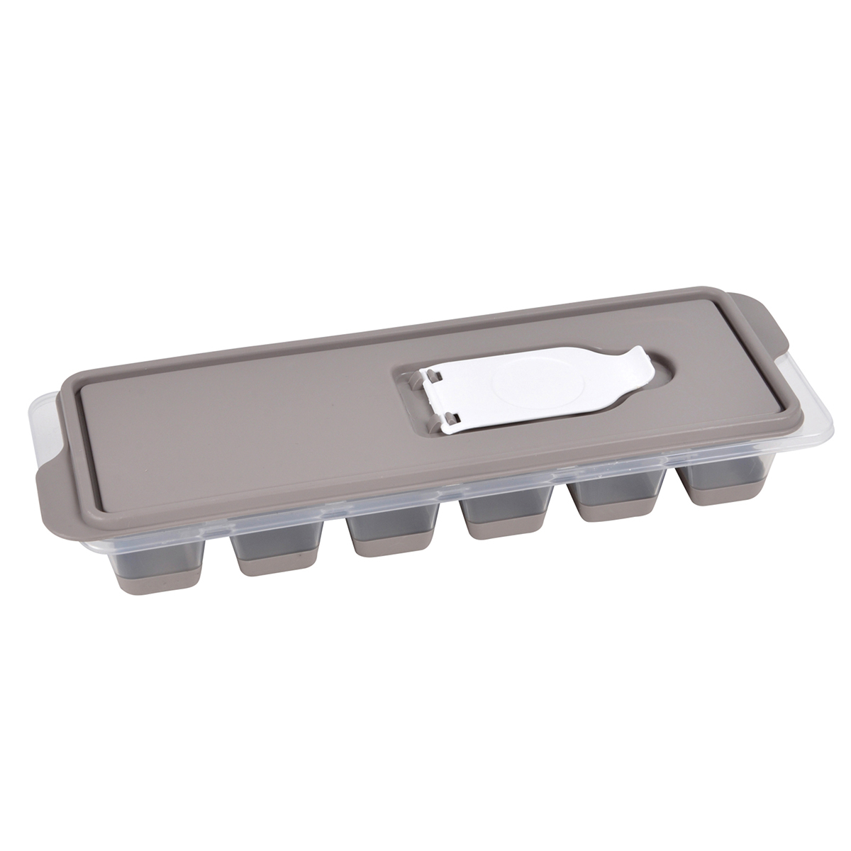 Παγοθήκη 12 θέσεων σε καφέ απόχρωση. Είναι κατασκευασμένη από πλαστικό υλικό για μεγαλύτερη αντοχή σε χαμηλές θερμοκρασίες και διαθέτει καπάκι για να αποτρέπονται τυχόν διαρροές ή επαφή με τα τρόφιμα. Στο κάτω μέρος διαθέτει σιλικόνη για να μπορείτε να βγάζετε τα παγάκια πιο εύκολα. Συνδυάστε τη με τα υπόλοιπα είδη της ίδιας συλλογής για να ένα ολοκληρωμένο αποτέλεσμα.