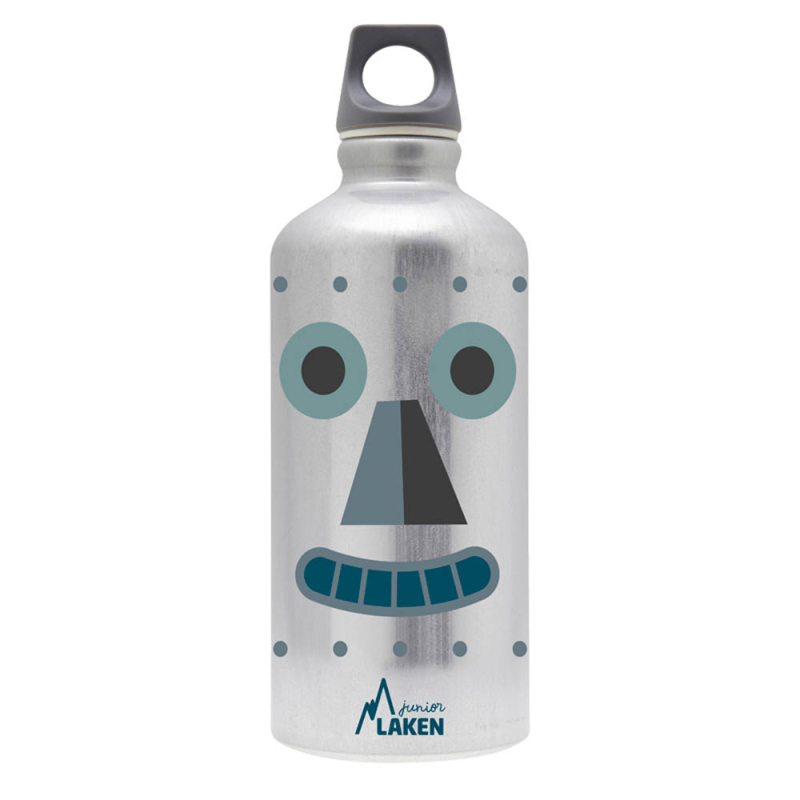 Παγούρι 600ml της εταιρείας Laken σε ασημί χρώμα με γαλάζιες λεπτομέρειες και σχέδιο ρομπότ. Είναι κατασκευασμένο από αλουμίνιο απαλλαγμένο από BPA και φθαλικά άλατα και διατηρεί την θερμοκρασία του περιεχομένου περισσότερη ώρα. Εσωτερικά έχει επίστρωση βερνικιού πολυαμιδίου, χωρίς εποξική ρητίνη, απόλυτα ασφαλής και πολύ ανθεκτική, η οποία απομονώνει πλήρως το περιεχόμενο και το προστατεύει. Ιδιαίτερα ανθεκτικό καθώς δεν σπάει ή ραγίζει στην περίπτωση πτώσης ή δημιουργίας βαθουλωμάτων. Είναι ελαφρύ με βάρος 103 γραμμ. και αντιστέκεται στις μυρωδιές και τους λεκέδες, δεν διατηρεί ή προσδίδει γεύσεις και είναι κατάλληλο για χυμούς. Διαθέτει εύκολο στη χρήση καπάκι με σφιχτό κλείσιμο για να αποφεύγονται οι διαρροές. Iδανικό για το σχολείο, τη βόλτα, την εκδρομή, το βρεφικό σταθμό ή το νηπιαγωγείο. Συνιστάται για παιδιά από 3 ετών και άνω. Ιδανικό για αγόρια. Τα προϊόντα της Laken πληρούν όλες τις απαραίτητες προδιαγραφές ασφαλείας.