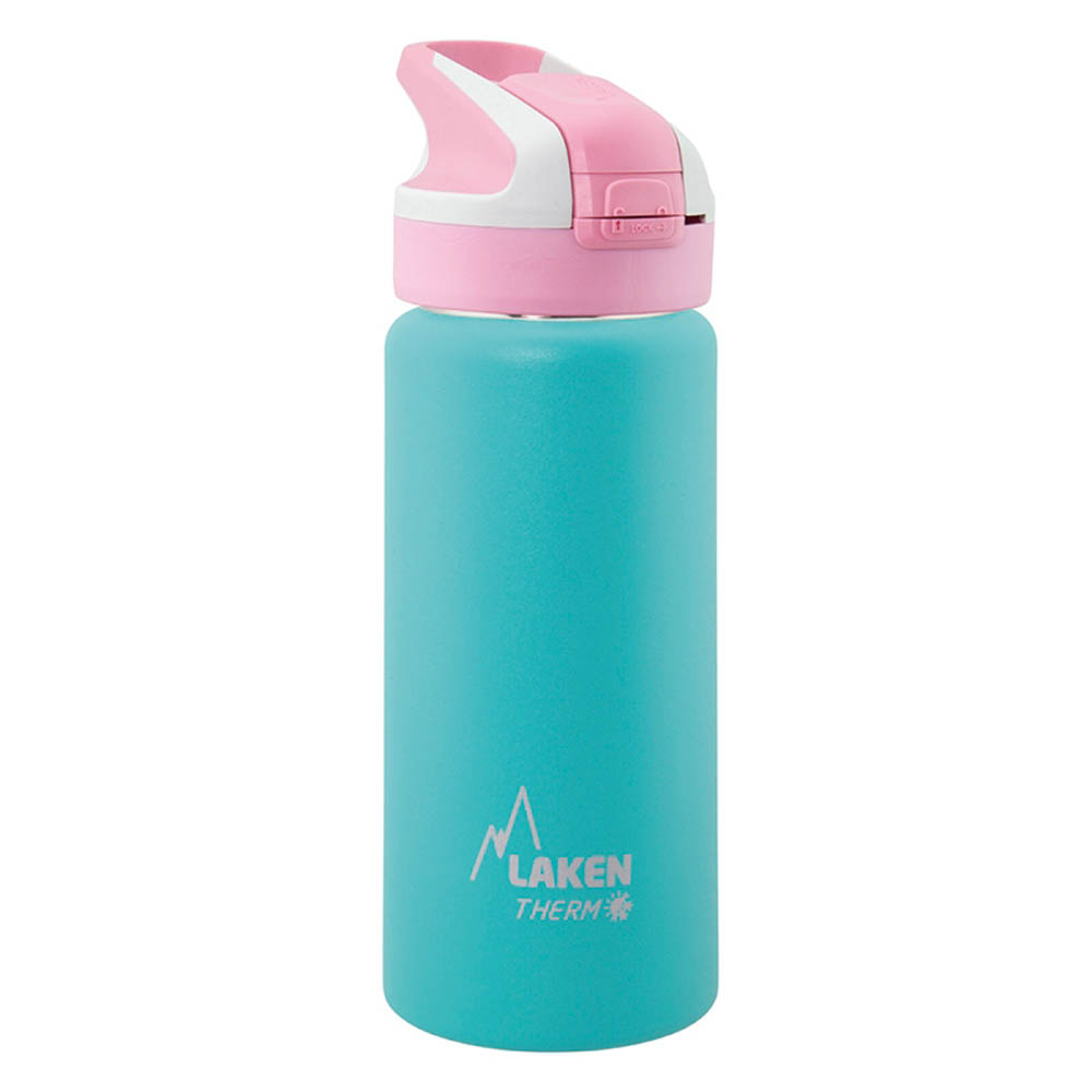 Θερμός 500ml της εταιρείας Laken σε τυρκουάζ χρώμα με ροζ καπάκι και μοντέρνο σχεδιασμό. Είναι κατασκευασμένο από 100% ανοξείδωτο ατσάλι 18/8 που είναι εξαιρετικά ασφαλές και ανθεκτικό. Έχει στόμιο summit από σιλικόνη που ανοίγει και κλείνει εύκολα. Το καπάκι έχει σφιχτό κλείσιμο για αποφυγή διαρροών. Τα διπλά τοιχώματά του έχουν σαν αποτέλεσμα τη διατήρηση θερμοκρασίας κρύου περιεχομένου έως 24 ώρες και ζεστού περιεχόμενου έως 12 ώρες. Ιδιαίτερα ανθεκτικό καθώς δεν σπάει ή ραγίζει στην περίπτωση πτώσης ή δημιουργίας βαθουλωμάτων. Είναι ελαφρύ με βάρος 261 γραμ. και μεταφέρεται εύκολα χάρη στο βολικό του μέγεθος. Η εξωτερική του επιφάνεια δεν καίει και δεν "ιδρώνει". Αντιστέκεται στις μυρωδιές και τους λεκέδες, δεν διατηρεί ή προσδίδει γεύσεις. Iδανικό για το σχολείο, τη βόλτα, την εκδρομή και όπου αλλού επιθυμείτε. Τα προϊόντα της Laken πληρούν όλες τις απαραίτητες προδιαγραφές ασφαλείας. **Διατίθενται ανταλλακτικά για τα μέρη του καπακιού**