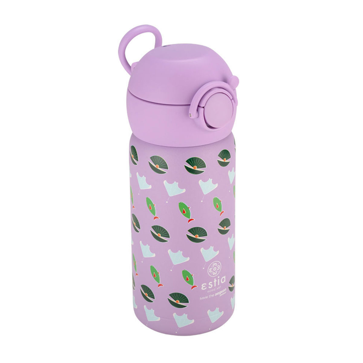 Παγούρι - θερμός από την εταιρεία εstia και τη σειρά "Save The Aegean" σε λιλά χρώμα με μοντέρνο σχέδιο. Η εταιρεία εstia συνεισφέρει στον οργανισμό "Save The Aegean" με 1% επί των πωλήσεων, για καθαρότερες θάλασσες και ένα καλύτερο αύριο. Είναι κατασκευασμένο από ανοξείδωτο ατσάλι 18/8 και έχει εσωτερικό καλαμάκι από σιλικόνη. Διατηρεί έως 6 ώρες κρύο και έως 6 ώρες ζεστό το περιεχόμενο. Το πρακτικό λουράκι του καθιστά εύκολη την μεταφορά. Το καπάκι με σύστημα κλικ για άνοιγμα και κλιπ ασφαλείας εξασφαλίζει μέγιστη προστασία και 100% στεγανότητα για να αποτρέπονται οι διαρροές. Διαθέτει μεγάλο στόμιο για εύκολο καθαρισμό. Το χρώμα τοποθετείται μέσω της τεχνικής powder coating, η οποία προσφέρει ένα ματ αποτέλεσμα και μεγάλη αντοχή στην μακροχρόνια χρήση. Είναι ιδανικό για τον παιδικό σταθμό, το νηπιαγωγείο ή οποιαδήποτε άλλη δραστηριότητα.
