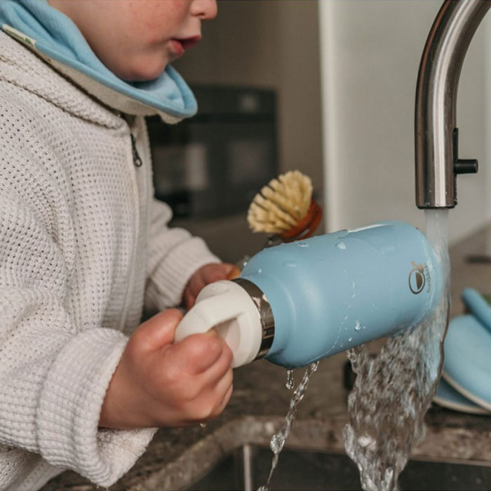 Παγούρι θερμός της εταιρείας Smikkels σε γαλάζιο χρώμα. Είναι κατασκευασμένο από ανοξείδωτο ατσάλι 18/8, απαλλαγμένο από επιβλαβείς ουσίες. Έχει διπλό τοίχωμα και με μόνωση κενού, το οποίο διατηρεί τα περιεχόμενα του ζεστά για έως και 12 ώρες και κρύα για 24 ώρες. Σημείωση: για τα ζεστά ροφήματα, όπως τσάι ή ζεστό καφέ, βεβαιωθείτε ότι έχουν κρυώσει αρκετά, πριν πιείτε από το καπάκι με το καλαμάκι για να αποφύγετε το κάψιμο. Διαθέτει δύο διαφορετικά καπάκια κατασκευασμένα από πλαστικό υλικό. Ένα καπάκι με καλαμάκι και ένα καπάκι σφράγισης. Το καπάκι σφράγισης χαρίζει ασφάλεια και ευελιξία. Επίσης, η λαβή μεταφοράς βοηθάει στο να το πιάνετε εύκολα. Iδανικό για το σχολείο, τη βόλτα, την εκδρομή, το βρεφικό σταθμό ή το νηπιαγωγείο. Έχει χωρητικότητα 350ml.