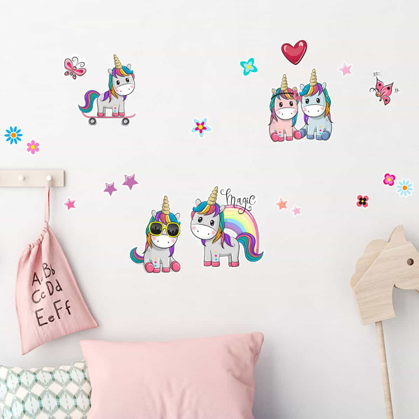 Καλωσορίστε τα παιδιά σας σε ένα δωμάτιο με χρώματα και σχέδια κατάλληλα για την ηλικία του. Πείτε μια ιστορία μέσα από τις διακοσμήσεις των τοίχων σας, τις πόρτες και τα έπιπλα σε ελάχιστο χρόνο αποτελεσματικά και οικονομικά, προσθέτοντας ένα διασκεδαστικό χαρακτήρα σε κάθε παιδικό δωμάτιο. Τοποθετούνται εύκολα δίδοντας μια προσωπική πινελιά στο δωμάτιο του παιδιού σας. Τα Colourful Unicorns διακοσμητικά αυτοκόλλητα τοίχου XL επανατοποθετούνται εύκολα και γρήγορα χωρίς ζημιές στο τοίχο ή το αυτοκόλλητο. Είναι κατασκευασμένα από βινύλιο χωρίς φθάλιο ή άλλα τοξικά υλικά. Οι επιφάνειες είναι ήδη κομμένες σε σχήματα και έτοιμες για τοποθέτηση. Αφαιρούνται εύκολα και γρήγορα χωρίς να κάνουν ζημιές στον τοίχο ή το αυτοκόλλητο, και μπορούν να επαναχρησιμοποιηθούν. Καθαρίζονται εύκολα. Συσκευασία 20 τεμαχίων σε 1 καρτέλα διαστάσεων 64x47εκ. Τα αυτοκόλλητα σε ανάπτυξη καλύπτουν επιφάνεια διακόσμησης 80x85εκ.