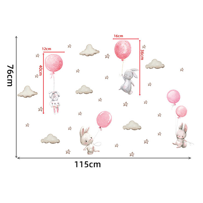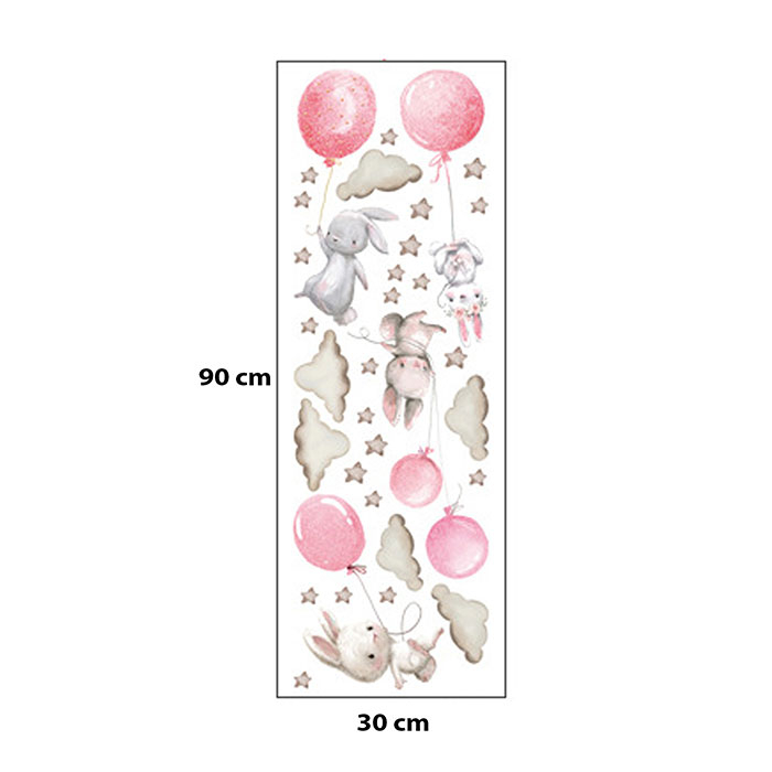 Παιδικά Αυτοκόλλητα Τοίχου Sipo Bunny Balloons Pink SIP-WS63028
