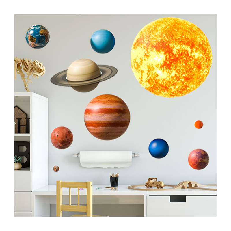Διακοσμήστε το δωμάτιο με τα αυτοκόλλητα της εταιρείας Sipo. Είναι πολύχρωμα με πλανήτες στο σχέδιο. Είναι κατασκευασμένα από σκληρό και ανθεκτικό υλικό που εφαρμόζεται και αφαιρείται εύκολα. Τα αυτοκόλλητα είναι ανθεκτικά στην υπεριώδη ακτινοβολία, έτσι η χρωματική τους ένταση δεν εξασθενεί με την πάροδο του χρόνου. Τα αυτοκόλλητα μετακινούνται ή αφαιρούνται εύκολα χωρίς να αφήνουν υπολείμματα κόλλας, ώστε να μπορείτε να αλλάξετε τη διακόσμηση του δωματίου ανάλογα με τις ανάγκες σας.