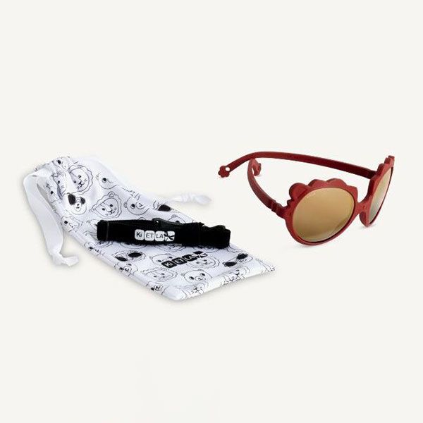 Παιδικά γυαλιά ηλίου από την εταιρεία KiETLA της συλλογής Lion σε μπορντώ χρώμα με μοντέρνο σχεδιασμό. Ο σκελετός τους είναι κατασκευασμένος από υποαλλεργικό ελαστομερές υλικό με τεχνολογία ζιγκ-ζαγκ. Αυτό το καθιστά άθραυστο, εύκαμπτο και εργονομικό. Είναι πολύ ελαφριά για να μην αφήνουν σημάδια στην μύτη και στα αυτάκια τους. Είναι απόλυτα ασφαλή για τα μικρά παιδιά καθώς δεν υπάρχουν βίδες και ενώσεις στον σκελετό. Οι φακοί έχουν ειδικό εφέ καθρέφτη χωρίς όμως να είναι polarized. Λόγω αυτού του εφέ δεν γρατζουνιούνται. Είναι πολυανθρακικοί κατηγορίας 3, με φίλτρο αντί UVA, UVB, UVC και ακτινοβολίας. Έχουν επίσης, ειδικό φίλτρο για μείωση της αντανάκλασης. Ο σκελετός εξαιρουμένων των φακών είναι ανακυκλώσιμος. Περιλαμβάνουν μια υφασμάτινη βαμβακερή θήκη μεταφοράς και ένα μαλακό ελαστικό κορδονάκι. Η συσκευασία τους είναι χάρτινη, επαναχρησιμοποιούμενη και ανακυκλώσιμη.