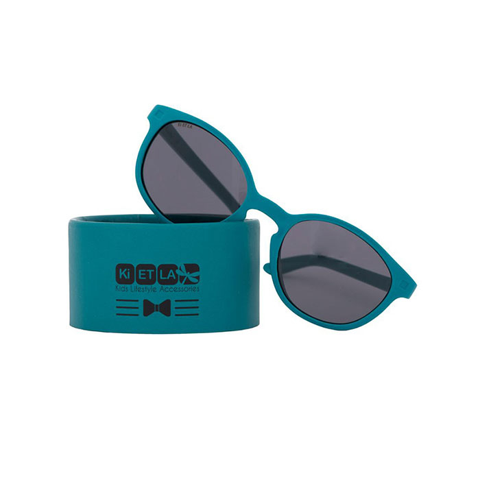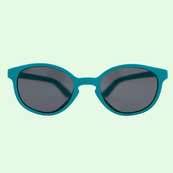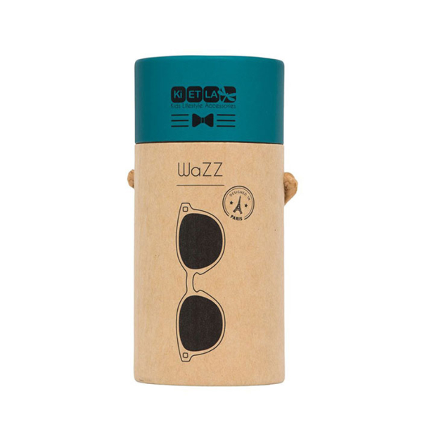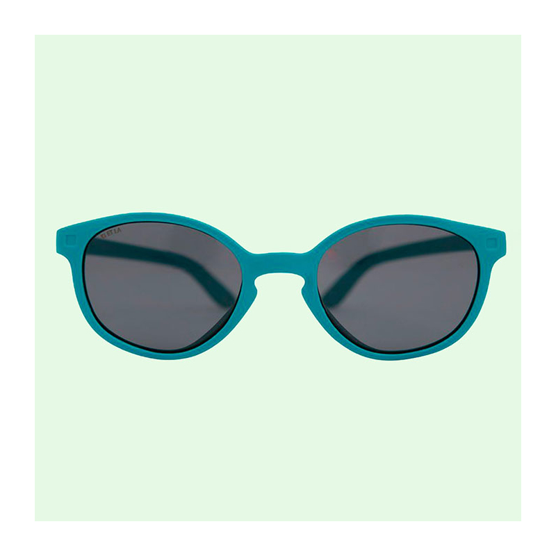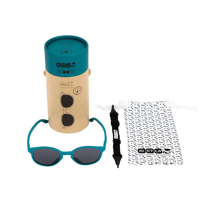 Παιδικά γυαλιά ηλίου από την εταιρεία KiETLA της συλλογής Wazz σε πετρόλ χρώμα με μοντέρνο σχεδιασμό. Ο σκελετός τους είναι κατασκευασμένος από υποαλλεργικό ελαστομερές υλικό με τεχνολογία ζιγκ-ζαγκ. Αυτό το καθιστά άθραυστο, εύκαμπτο και εργονομικό. Είναι πολύ ελαφριά για να μην αφήνουν σημάδια στην μύτη και στα αυτάκια τους. Είναι απόλυτα ασφαλή για τα μικρά παιδιά καθώς δεν υπάρχουν βίδες και ενώσεις στον σκελετό. Οι φακοί είναι πολυανθρακικοί κατηγορίας 3, με φίλτρο αντί UVA, UVB και UVC. Επίσης, έχουν φίλτρο anti-blue-light για μείωση της αντανάκλασης, εγγυώντας ξεκούραστη όραση. Ο σκελετός εξαιρουμένων των φακών είναι ανακυκλώσιμος. Περιλαμβάνουν μια υφασμάτινη βαμβακερή θήκη μεταφοράς και ένα μαλακό ελαστικό κορδονάκι. Η συσκευασία τους είναι χάρτινη, επαναχρησιμοποιούμενη και ανακυκλώσιμη.