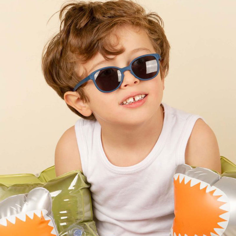 Παιδικά γυαλιά ηλίου σε μπλε χρώμα και μοντέρνο σχέδιο από την εταιρία KiETLA. Με ενιαίο πλαίσιο χωρίς βίδες, ενώσεις και μεταλλικά μέρη αποτελούν ιδανική λύση για το παιδάκι σας, καθώς δεν διατρέχει κίνδυνο κατάποσης ή τραυματισμού. Η ειδική τεχνολογία κατασκευής ''ζιγκ-ζαγκ'' επιτρέπει στο σκελετό να είναι εύκαμπτος και άθραυστος, εξασφαλίζοντας την ασφάλεια του μικρού σας. Χάρη στον εργονομικό, ελαφρύ και εύκαμπτο σκελετό στέκονται άνετα στο βρεφικό πρόσωπο χωρίς να ασκούν πίεση στη μύτη ή στα αυτιά. Οι φακοί προστασίας είναι κατασκευασμένοι από πολυανθρακικό υλικό υψηλότερης κατηγορίας (κατηγορία 3) και παρέχουν 100% προστασία από UVA, UVB και UVC ακτινοβολία. Διαθέτουν ενσωματωμένο το ειδικό φίλτρο της KiETLA για μείωση της αντανάκλασης. Επιπλέον διαθέτουν μαλακό λουράκι για να στερεώνονται γύρω από το κεφαλάκι του μωρού σας. Έρχονται σε χάρτινο κουτί. Ιδανικό ζευγάρι γυαλιών ηλίου για στιλάτες εμφανίσει, με ασφάλεια και άνεση.