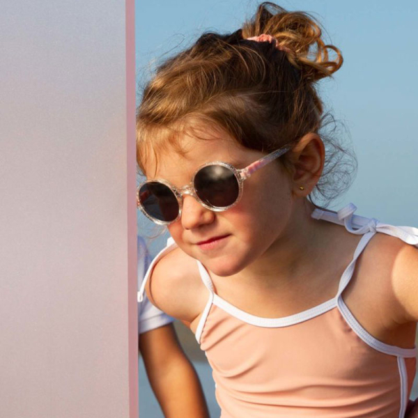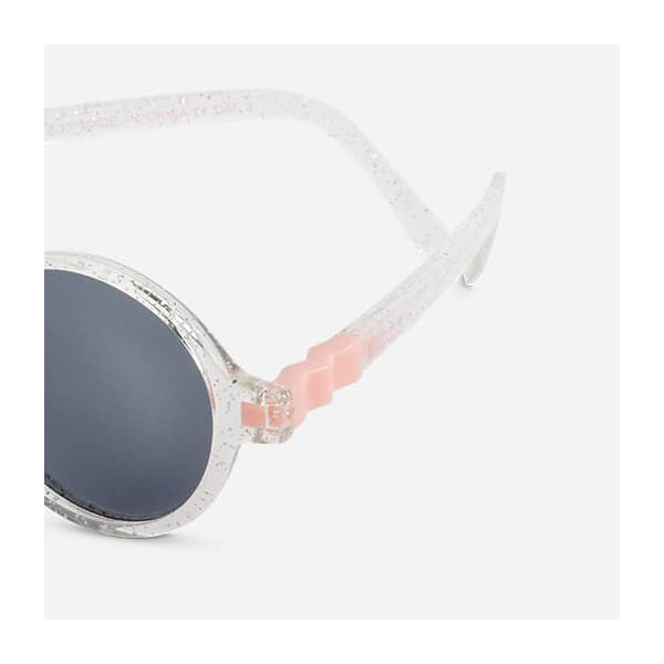Παιδικά γυαλιά ηλίου σε διάφανο χρώμα, γκλίτερ και ροζ λεπτομέρεις με μοντέρνο σχέδιο από την εταιρία KiETLA. Με ενιαίο πλαίσιο χωρίς βίδες, ενώσεις και μεταλλικά μέρη αποτελούν ιδανική λύση για το παιδάκι σας, καθώς δεν διατρέχει κίνδυνο κατάποσης ή τραυματισμού. Η ειδική τεχνολογία κατασκευής ''ζιγκ-ζαγκ'' επιτρέπει στο σκελετό να είναι εύκαμπτος και άθραυστος, εξασφαλίζοντας την ασφάλεια του μικρού σας. Χάρη στον εργονομικό, ελαφρύ και εύκαμπτο σκελετό στέκονται άνετα στο παιδικό πρόσωπο χωρίς να ασκούν πίεση στη μύτη ή στα αυτιά. Οι φακοί προστασίας είναι κατασκευασμένοι από πολυανθρακικό υλικό υψηλότερης κατηγορίας (κατηγορία 3) και παρέχουν 100% προστασία από UVA, UVB και UVC ακτινοβολία. Διαθέτουν ενσωματωμένο το ειδικό φίλτρο της KiETLA για μείωση της αντανάκλασης. Κατάλληλο για ηλικίες 4 έως 6 ετών. Ιδανικό ζευγάρι γυαλιών ηλίου για στυλάτες εμφανίσει, με ασφάλεια και άνεση.