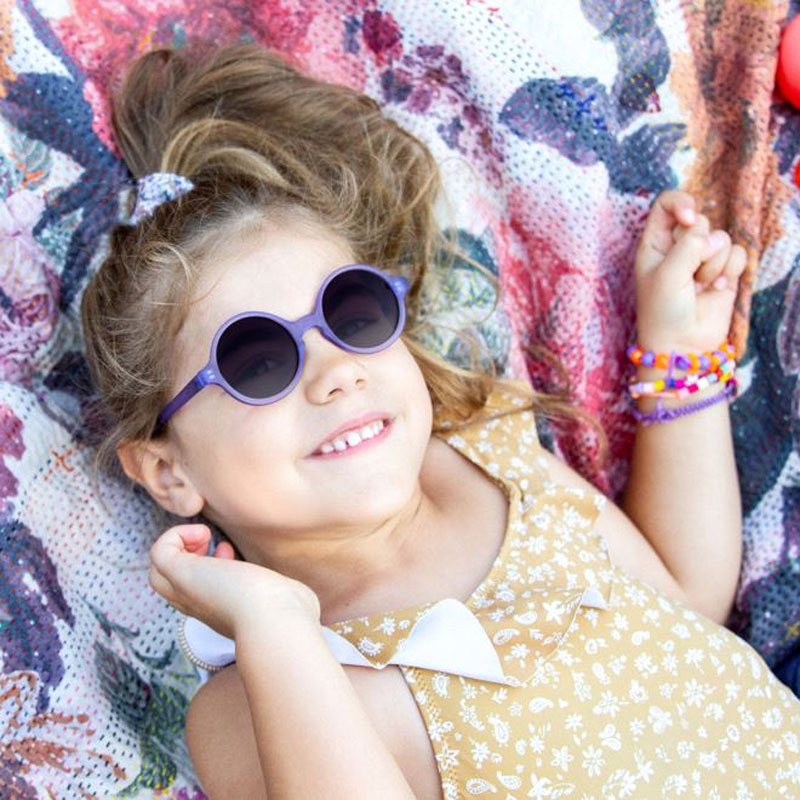 Παιδικά γυαλιά ηλίου σε μωβ χρώμα και μοντέρνο σχέδιο από την εταιρία KiETLA. Εμπνευσμένα από την δεκαετία του '70 και το disco look, είναι ειδικά σχεδιασμένα για παιδιά από 4 έως 6 ετών καθώς είναι ασφαλή και μοδάτα. Με άνετο και ελαφρή σκελετό από πολυανθρακικό υλικό και soft touch φινίρισμα, δεν πιέζουν την μυτούλα ή τα αυτάκια των παιδιών σας. Οι εργονομικοί φακοί κατηγορίας 3 αποτρέπουν τις βλαβερές ακτίνες ηλίου χάρη στα φίλτρα κατά των UVA, UVB, UVC. Ιδανικό ζευγάρι γυαλιών ηλίου για στυλάτες εμφανίσει, με ασφάλεια και άνεση.