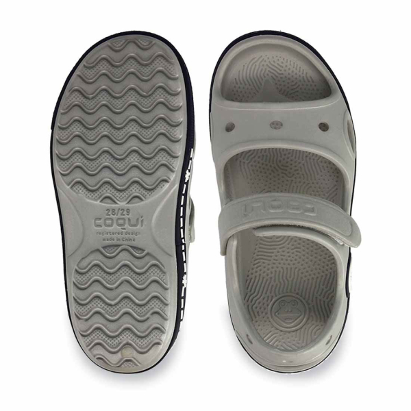 Παιδικά αδιάβροχα πέδιλα παραλίας από την εταιρεία Coqui (κωδ.: 12621003) σε γκρι απόχρωση. Διαθέτουν φάσα στο μπροστινό μέρος με τρύπες για τον σωστό αερισμό του ποδιού και την αποστράγγιση του νερού. Φέρουν λουρί με ρυθμιζόμενο κλείσιμο για περισσότερη ασφάλεια και ευκολία στην εφαρμογή. Είναι κατασκευασμένα από το αφρώδες υλικό EVA, που εξασφαλίζει ελαστικότητα, ευλυγισία και αντοχή. Ο εσωτερικός πάτος είναι αρκετά μαλακός για περισσότερη άνεση. Η σόλα τους είναι αντιολισθητική για μεγαλύτερη σταθερότητα. Είναι ιδανικά τόσο για το σπίτι και τη βόλτα, όσο και για ατελείωτες στιγμές στην άμμο και την παραλία. Με την υπογραφή της εταιρείας Parex για άριστη ποιότητα και αξιοπιστία.