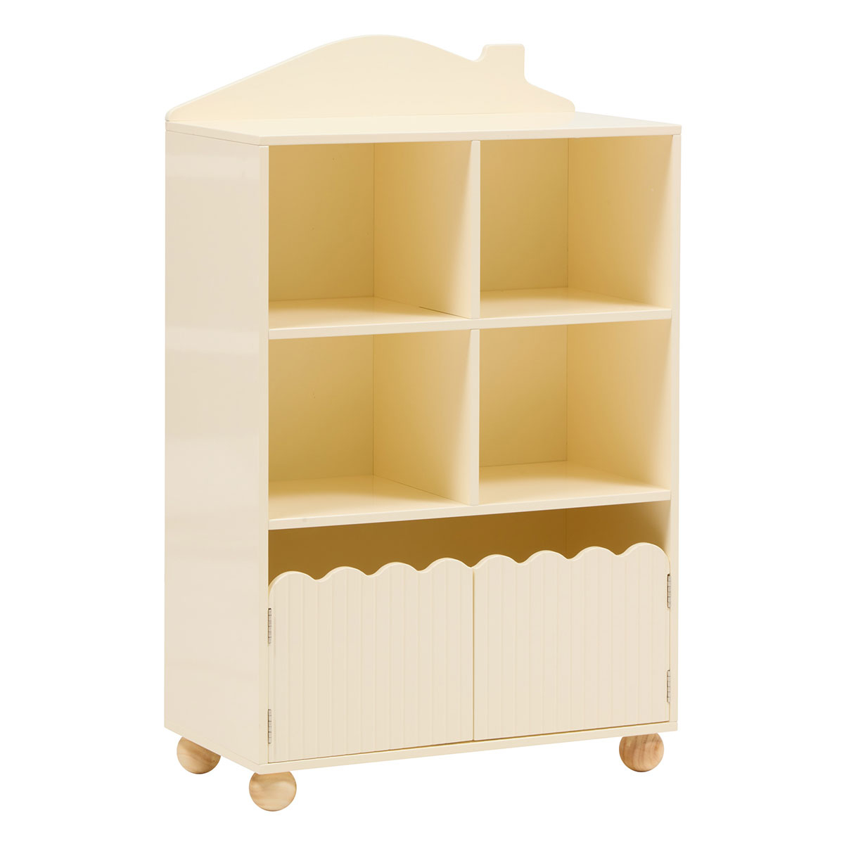 Βιβλιοθήκη ιδανική για το βρεφικό και παιδικό δωμάτιο. Είναι κατασκευασμένη από ξύλο MDF_E1 σε μπεζ απόχρωση με κυματιστό σχέδιο και στρογγυλεμένα ποδαράκια σε φυσική απόχρωση. Διαθέτει 4 ράφια και 1 μεγαλύτερο όπου μπορείτε να τοποθετήσετε κορνίζες, μικροαντικείμενα, παραμύθια, λούτρινα και ότι άλλο θέλετε να κρατήσετε οργανωμένο. Ξύλο με πιστοποίηση FSC. Συνδυάστε τη με τα υπόλοιπα είδη της ίδιας συλλογής για ένα ολοκληρωμένο αποτέλεσμα. Το προϊόν έρχεται αμοντάριστο και συναρμολογείται βάσει οδηγιών.