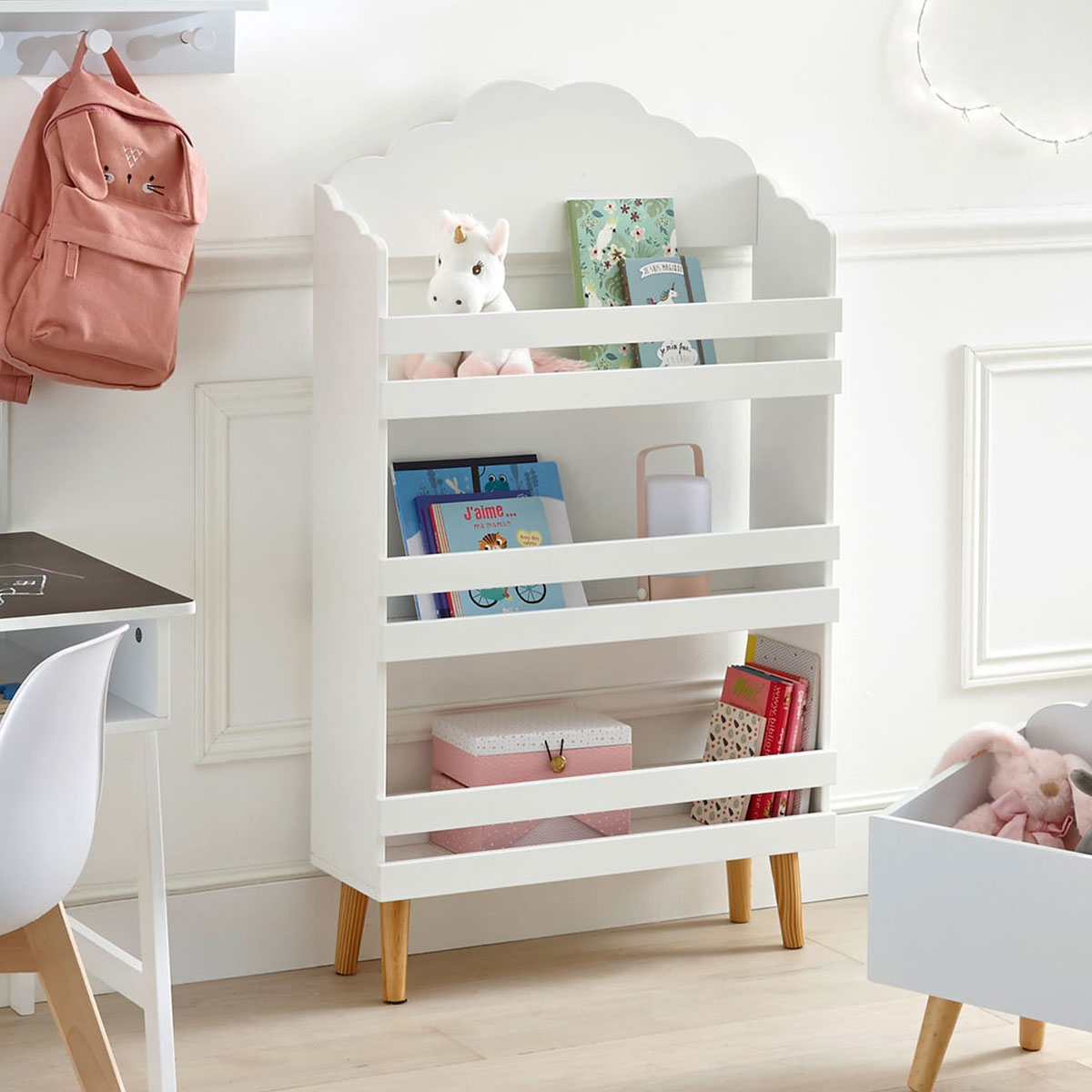 Βιβλιοθήκη με 3 ράφια ιδανική για το βρεφικό και παιδικό δωμάτιο. Είναι κατασκευασμένη από ξύλο MDF_E1 σε λευκό χρώμα με ποδαράκια σε φυσική απόχρωση. Μπορείτε να τοποθετήσετε κορνίζες, μικροαντικείμενα, παραμύθια, λούτρινα και ότι άλλο θέλετε να κρατήσετε οργανωμένο. Σύμφωνο με το πρότυπο: NF D 60-300-1. Το προϊόν έρχεται αμοντάριστο και συναρμολογείται βάσει οδηγιών.