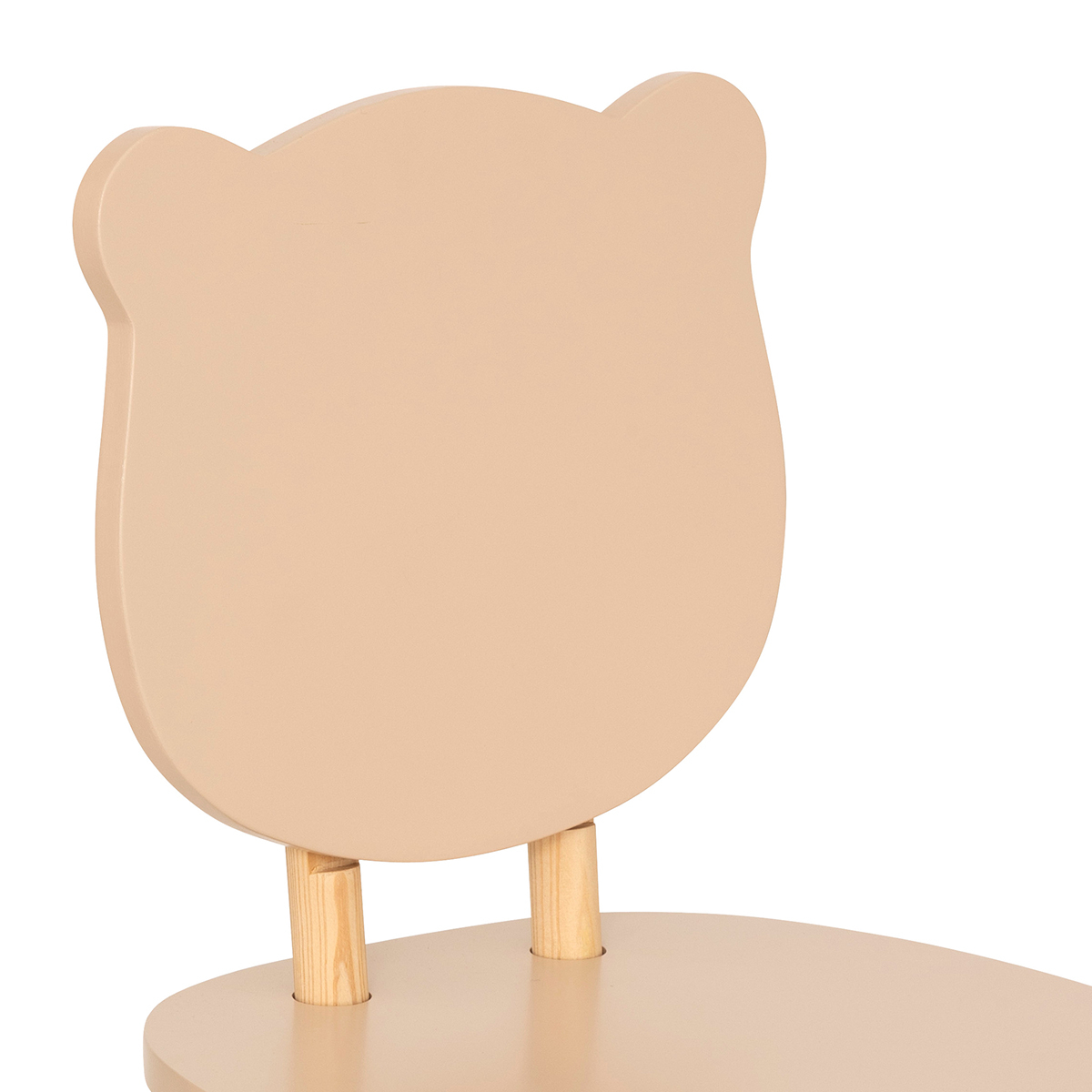 Παιδικό καρεκλάκι που θα ταιριάξει μοναδικά στο παιδικό δωμάτιο. Ο σκελετός είναι κατασκευασμένος από ξύλο πεύκου και MDF_E1 σε μπεζ χρώμα με μπεζ πόδια και έχει σχήμα αρκουδάκι. Κατάλληλη για χρήση σε εσωτερικό χώρο. Μέγιστο βάρος αντοχής: 75kg. *Το προϊόν έρχεται αμοντάριστο και συναρμολογείται βάσει οδηγιών.*