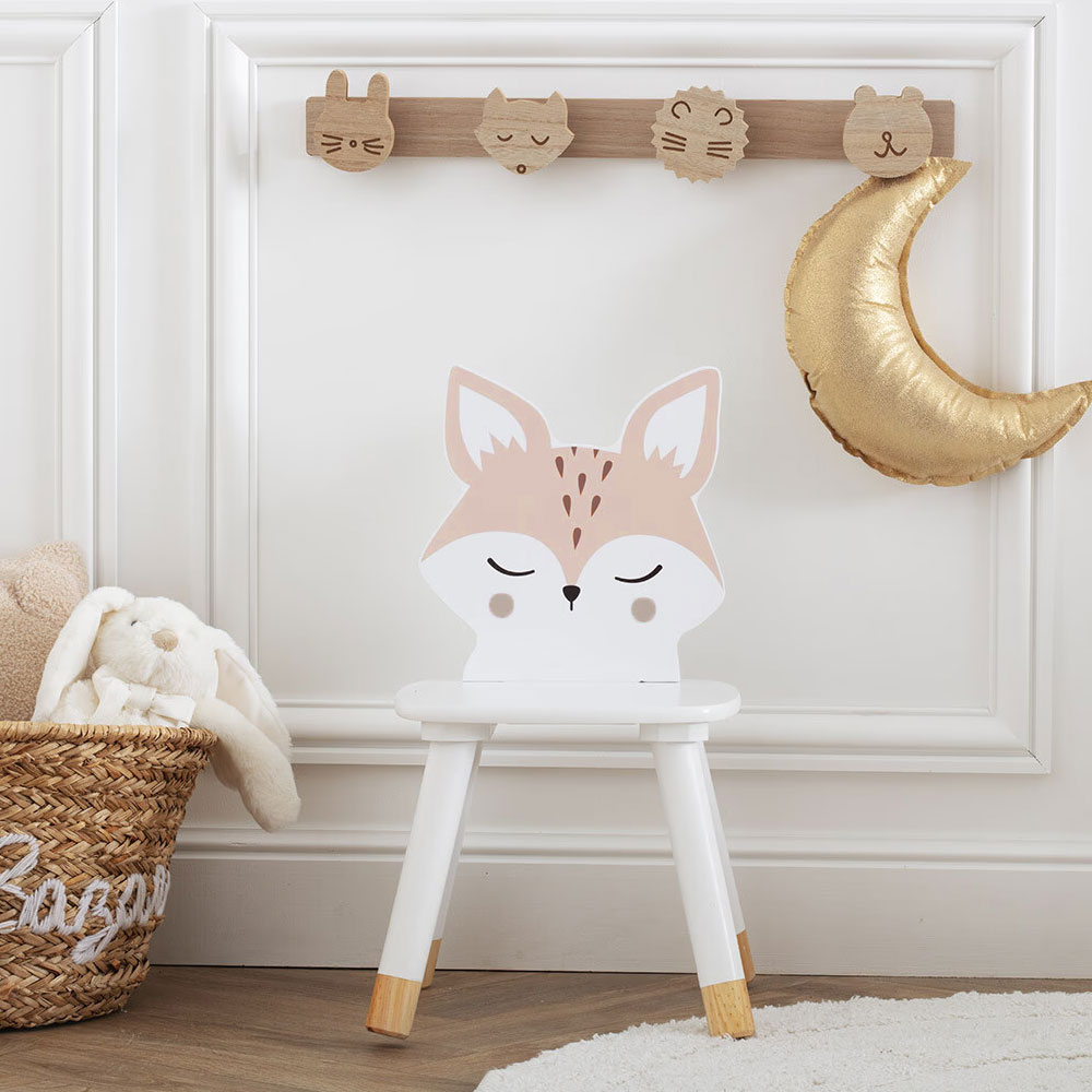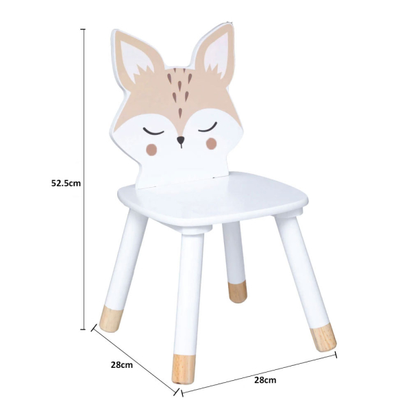 Παιδική καρέκλα που θα ταιριάξει μοναδικά στο παιδικό δωμάτιο. Ο σκελετός είναι κατασκευασμένος από ξύλο πεύκου και MDF_E1 σε λευκή απόχρωση με σχέδιο αλεπούς. Κατάλληλη για χρήση σε εσωτερικό χώρο. Μέγιστο βάρος αντοχής: 75kg. *Το προϊόν έρχεται αμοντάριστο και συναρμολογείται βάσει οδηγιών.*